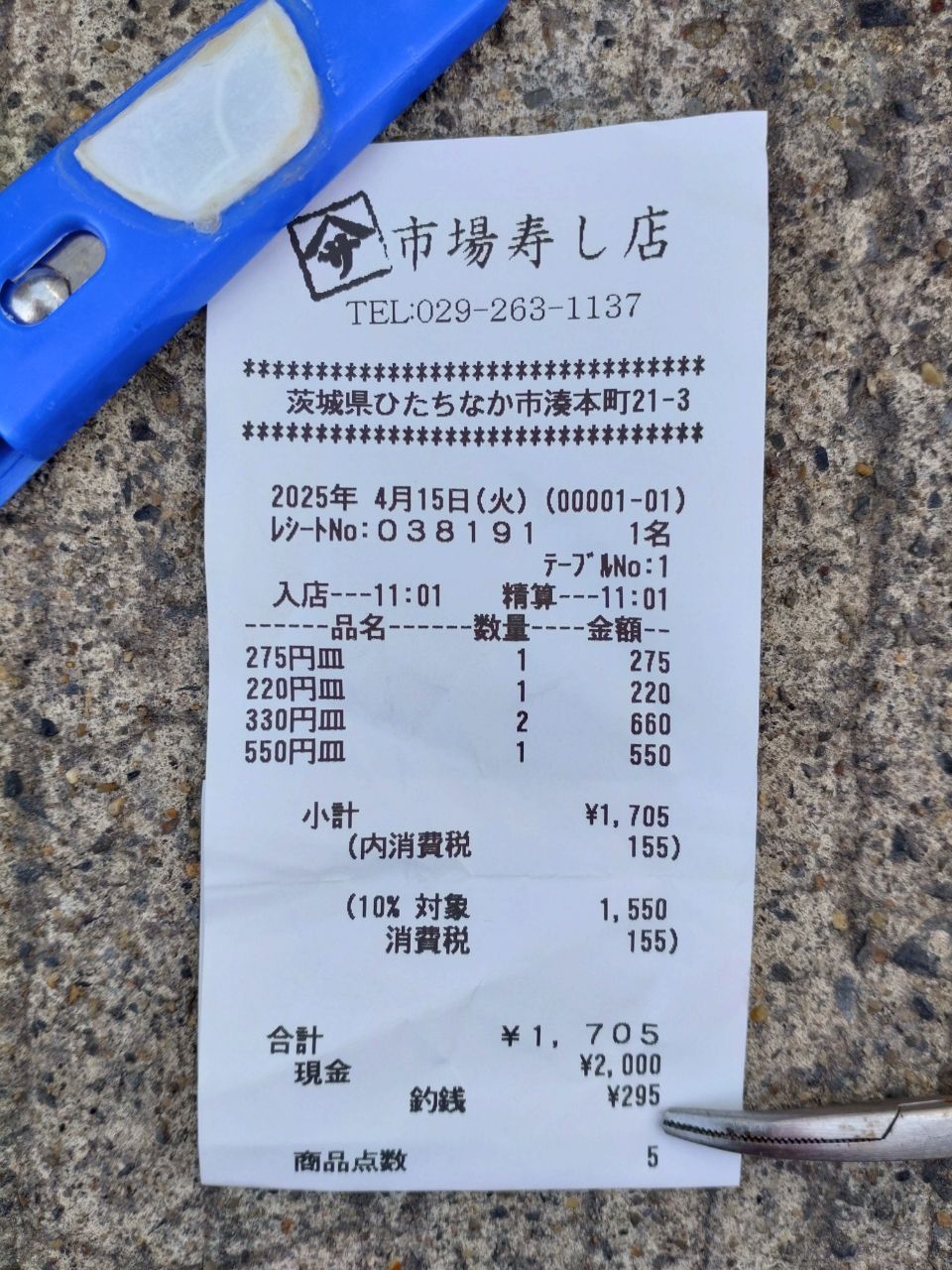 珍しくて他では味わえない握り5皿10艦、最後はシマアジ550円で合計約1700円でした(画像3)。