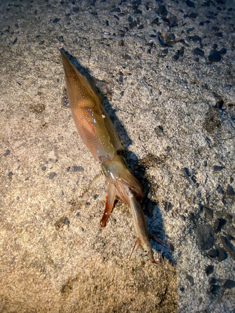 アジング中ヒイカみたいなの見つけてエギ投げたらヤリイカが飛び出てきて初ヤリイカ釣れました!ひっさびさの生物釣れてよかったです笑笑友達も1杯釣れましたとさ。