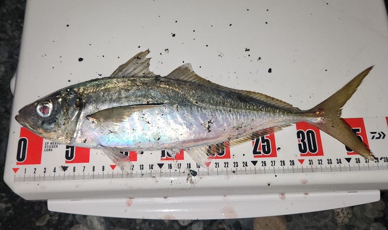 サーフアジンクで初めての地合に遭遇し、尺アジとギガアジ計6尾を釣り上げることができました❤フルキャストして、長めのフリーフォール中に毎回ガツンっと喰ってきてくれたので、だいぶイージーモードでしたが…😅