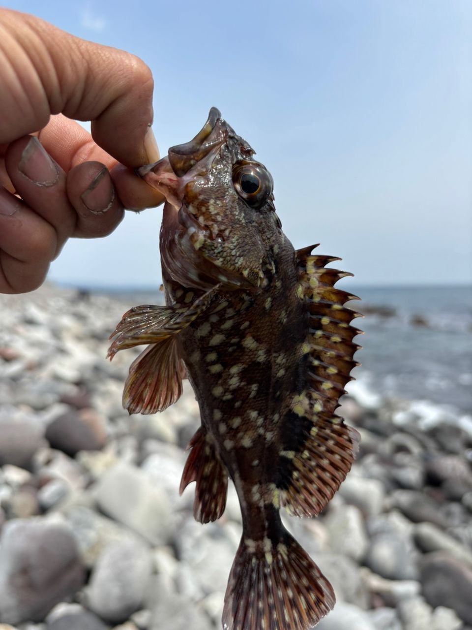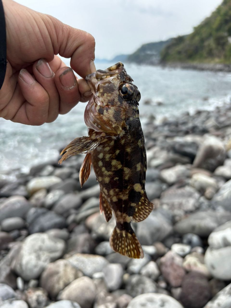 帰りにのんびり根魚釣りゴロタ浜も風強くて釣り辛く2匹