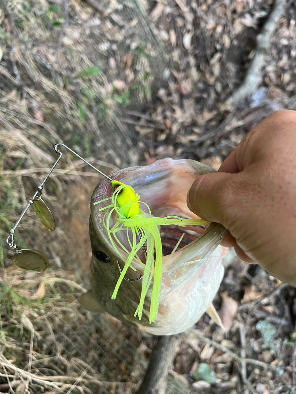 岸際を巻いてきて倒木に当てた直後のバイト