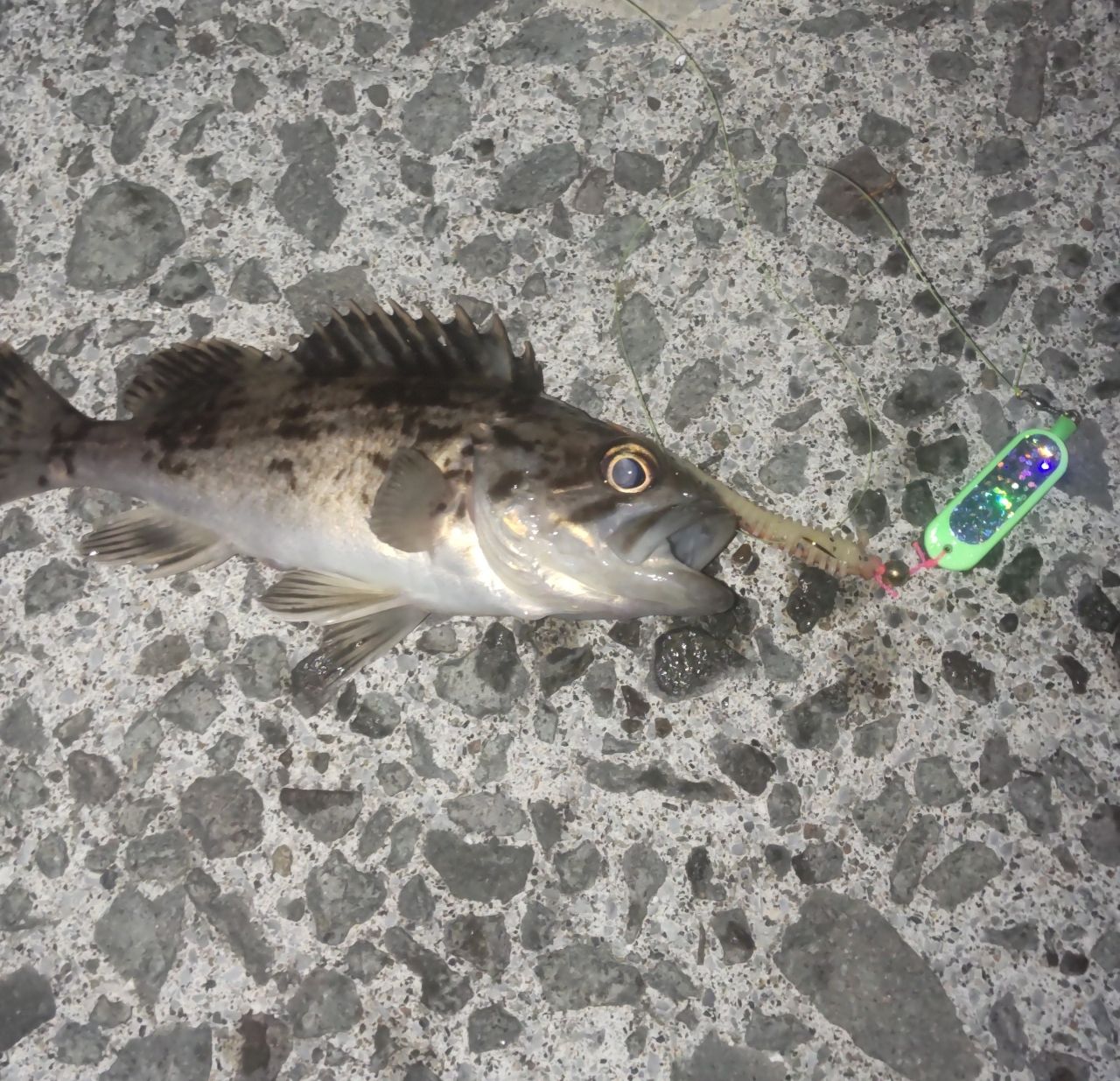 蛍光ブラーにガルプを付けて、ずり引きだけ😅それでも釣れます😁