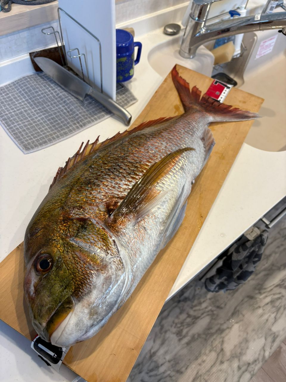 かなり走られたので青物かと思いフッキング入れて中々あがらないので途中はドラグ締めてゴリ巻きしたら真鯛でした💦