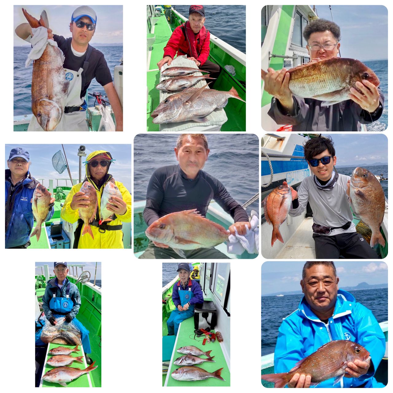 連日、大型真鯛が釣れています!本日は最大6kgの大型真鯛が釣れています、さらにトップは7枚!