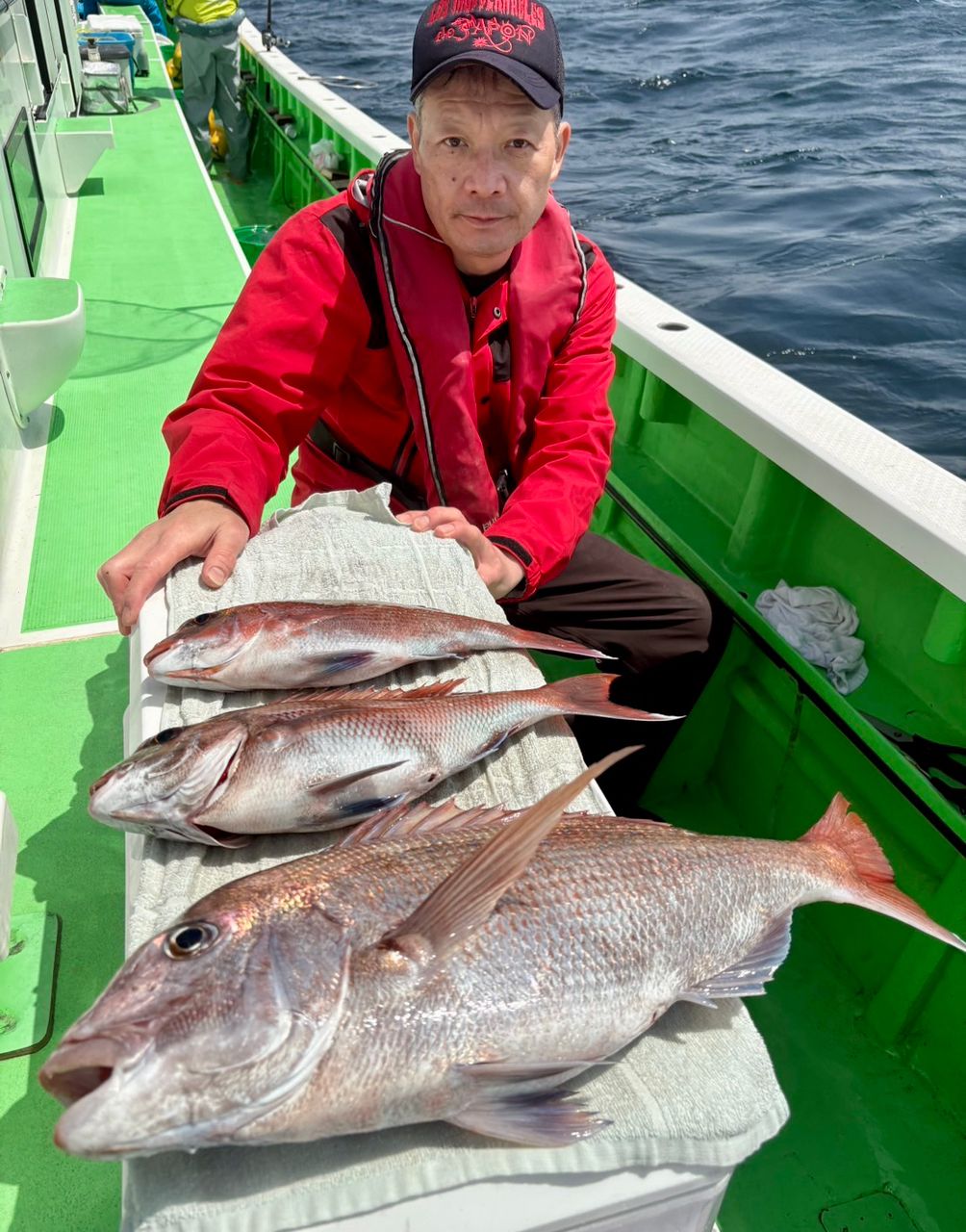 3kgや4kgの真鯛も釣れています。8時以降は活性が落ち着き出すも魚群は山盛り、拾い釣りの様になりながらもポツポツと真鯛のヒットあり。