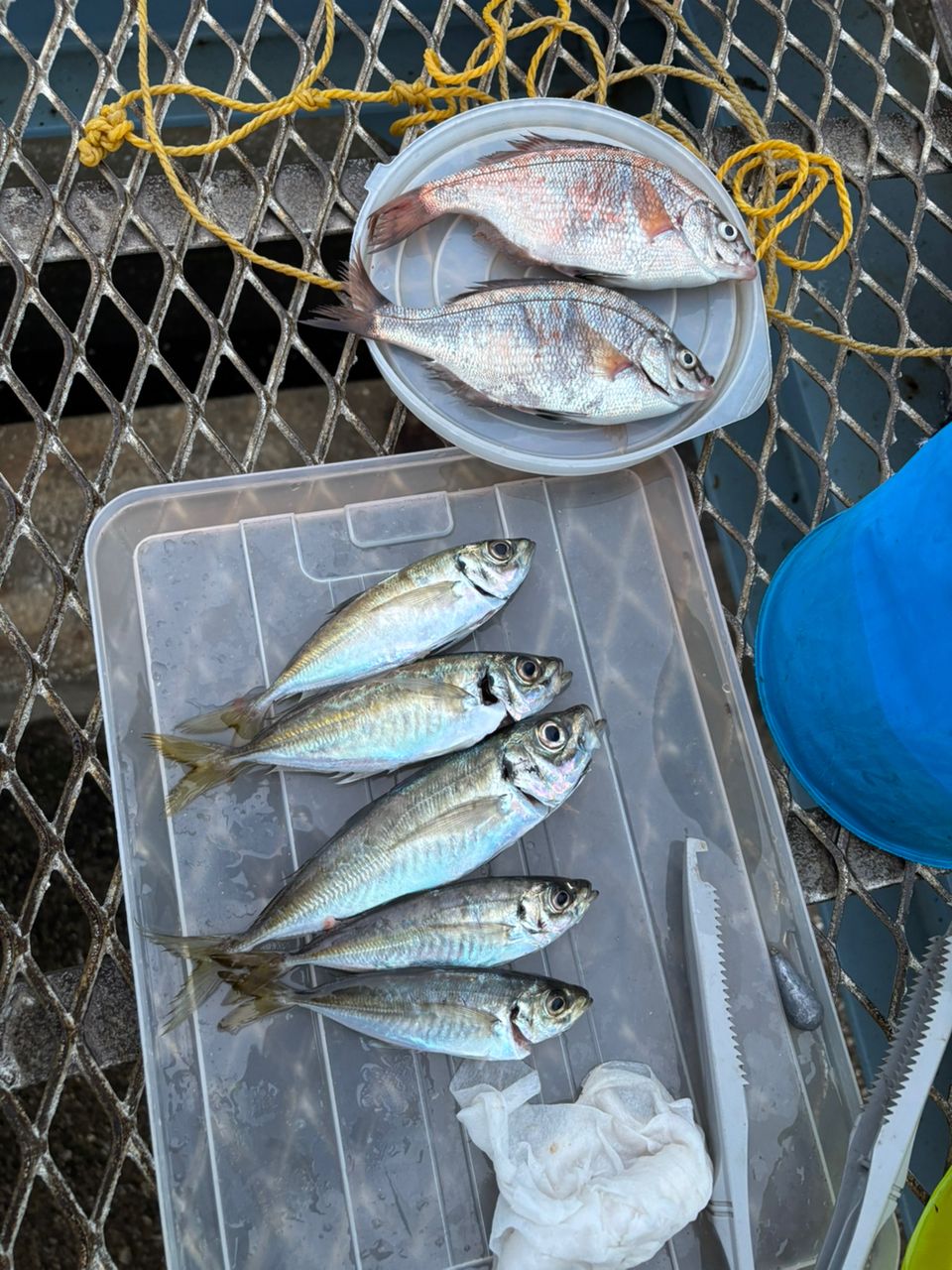 アジは、6匹釣ったけどバケツに入れようとしたら隙間から海へ1匹お帰りになりました😭