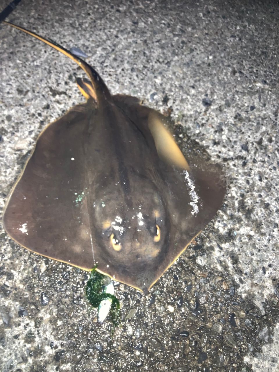 小サバの泳がせでエイ。またあなたでしたか。小さかったので、ヒラメかと思ってしまいました。大きめなカサゴも釣れました。