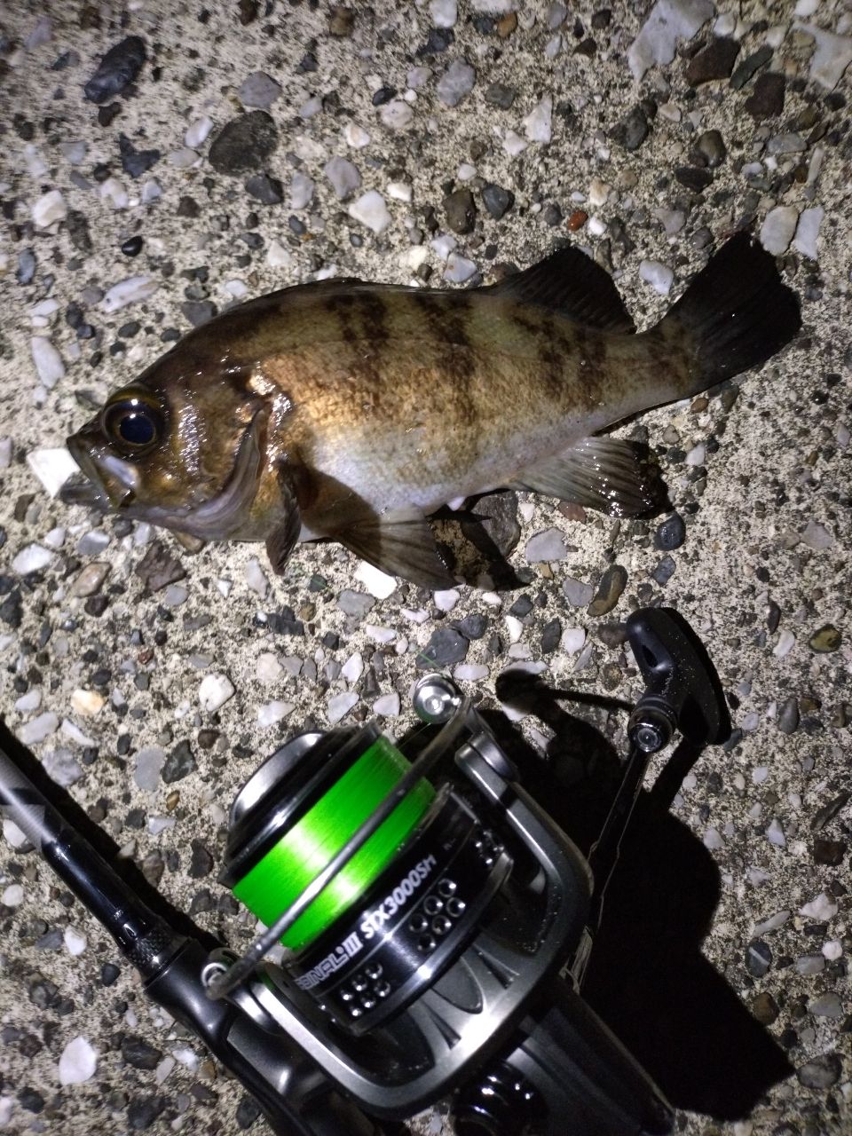 シャローエリア、フロートリグにて大潮チャレンジ✨👏左から右にものスゴく走る潮にフロートをドリフト💨💨この海況なら、表層に出る!と読み、0.2gのジグヘッドでスタート✨コンスタントに活性の高い良型メバル様達がたくさん遊んでくれました😂✨流れの中のこのサイズはドラグガンガン出されてもう脳汁出まくりでした😆🔥スペシャルゲストのクサフグちゃんとカサゴちゃんにも出会えて極上な夜明け前でした✨✨メバルシーズンも終盤で、寂しい気持ち、、、😢感謝👍
