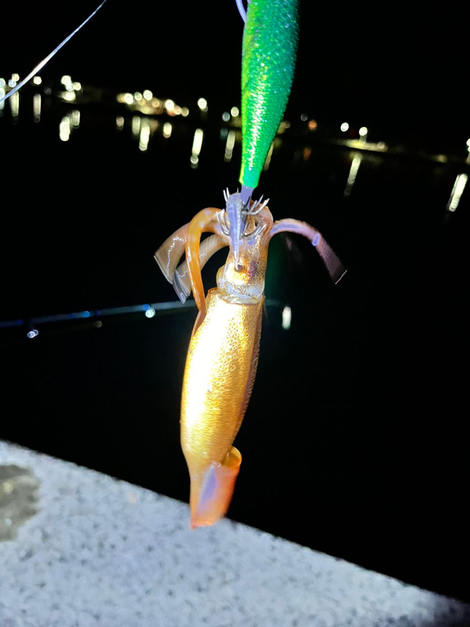 何回かシャクると可愛いヤリイカ釣れました👍小さ過ぎて当たりも感じ取れません💦当然リリースですがアオリイカに出会う為、移動です☝️