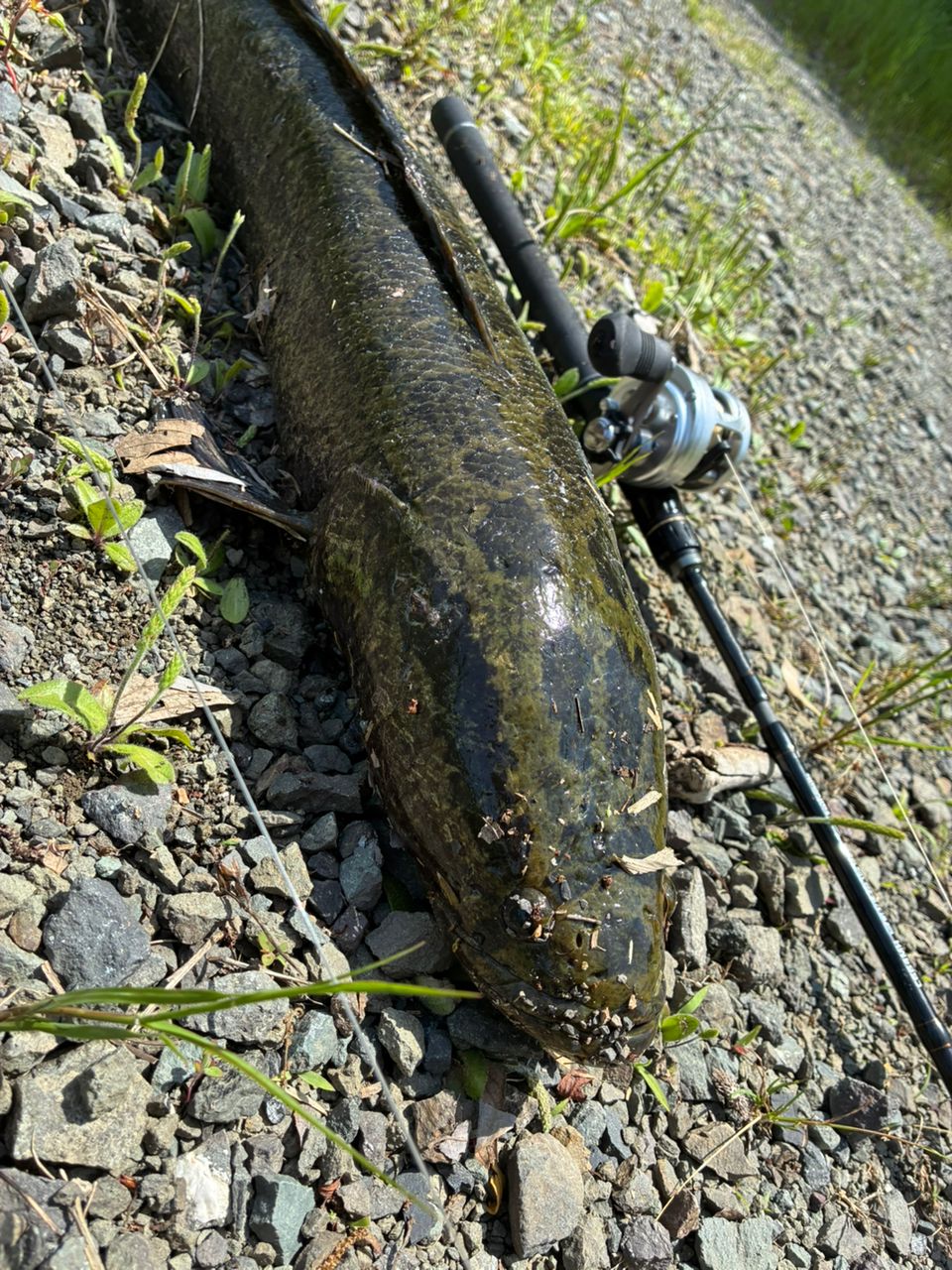 自分の腕より太くて長い雷魚が釣れました!!誇張なしに鯉の3倍引きました!