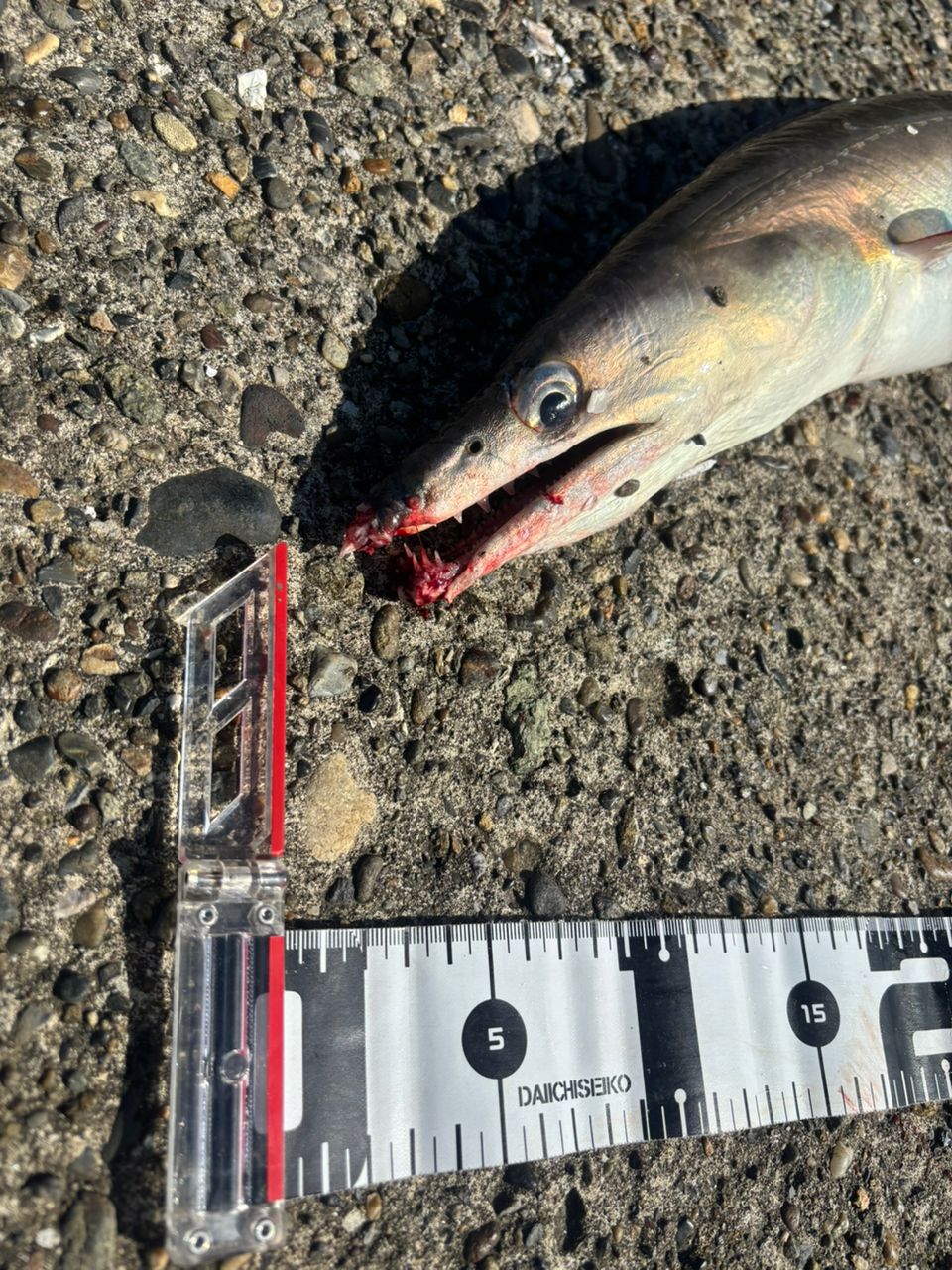 ようやくの陸上げ、、ハモだー、歯が鋭い、、こんなん、ここにいるんだー!という驚き、ワームもボロボロ、ハリも全て変形、