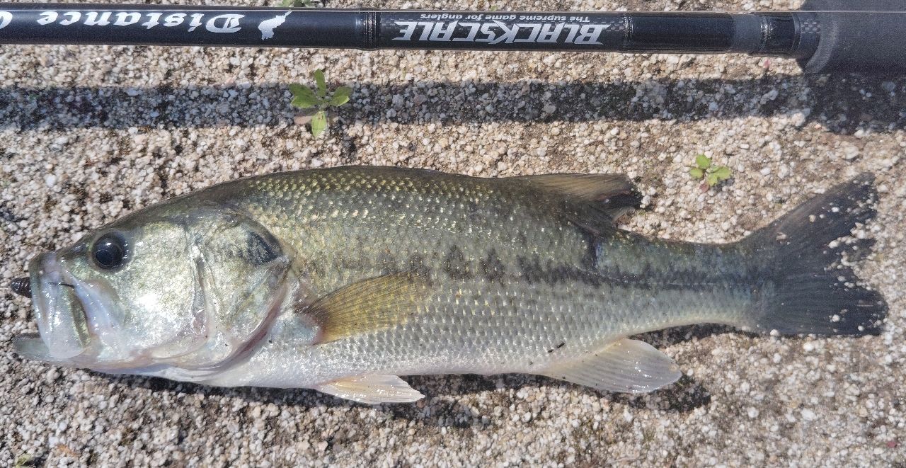 してやったりでサイズは野池レギュラーサイズのサンマル級だが、本日唯一ヘビキャロで仕留めた一本♪🐟️✨