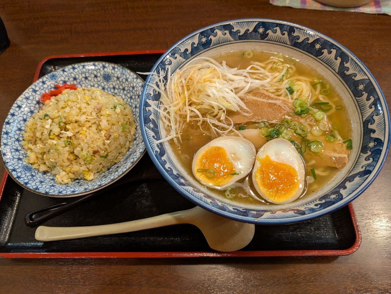 帰りに久しぶりに紺のれんさんで、ねぎ豚ラーメン🐽🍜と炒飯のセットで〆ました👍
