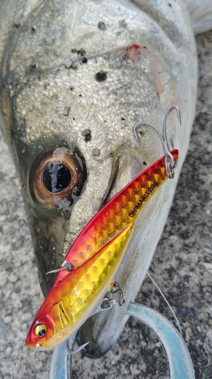 ヒットアイテムはイワシパターンに効く最近のメインアイテム、メガバス鬼丸赤金✨