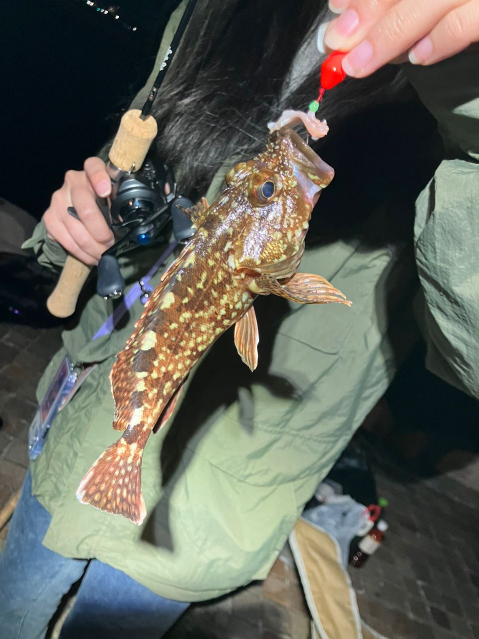 大阪から帰省した友達と夜景を見ながら餌釣り、初めて下関でアナゴ釣れた😱