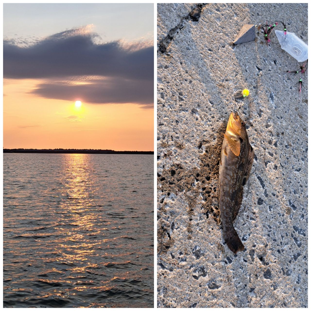 一枚目…5月3日、あこがれの初岩内。激混みでしたがどうにか入れるところがあり、自作仕掛で投げ。…が、アブちゃん一匹のみ😂。きれいな夕日を堪能。