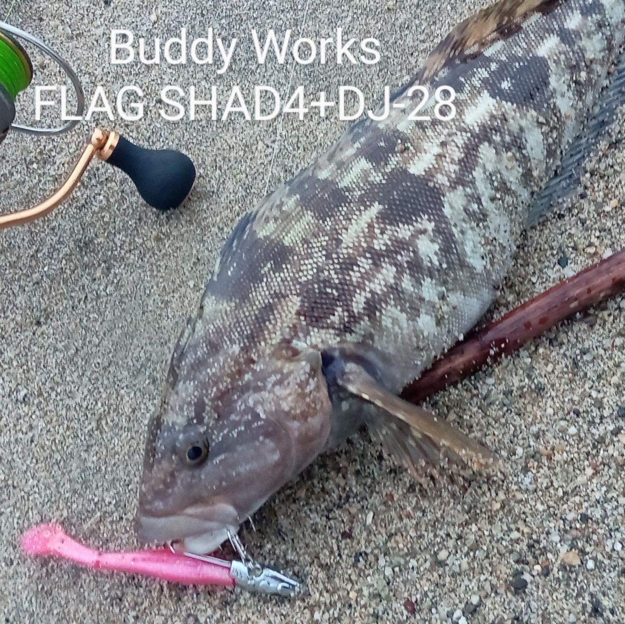 けど…青物の接岸は未だみたいだし、BuddyWorks FLAG SHAD4+DJ-28でフラット狙いでボトム付近を探ってたら…