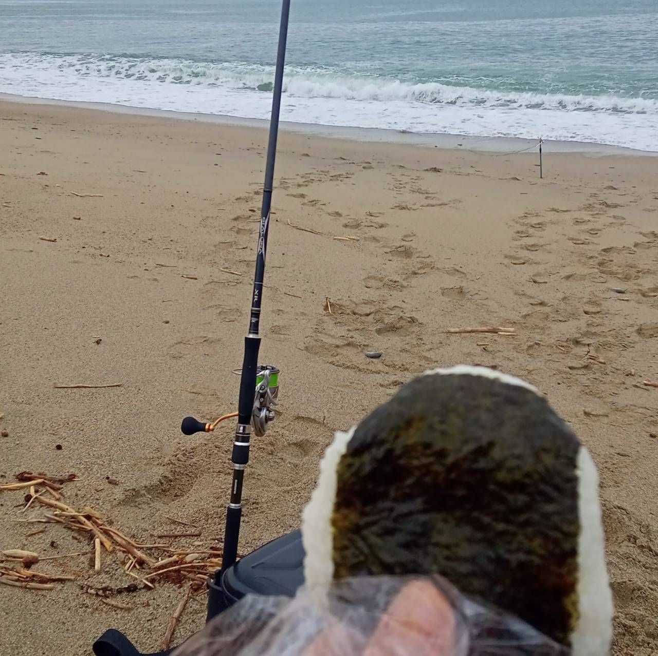 6時頃には小雨🌂も上り、半年ぶりのサーフでの愛妻🩷おにぎり🍙を食べ、久々の浜で清々しい朝のひとときでした。😌