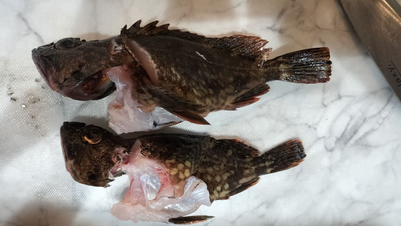 イソメちゃんを付けた竿の方で辺りを探ると、なんとカサゴちゃんをゲット。