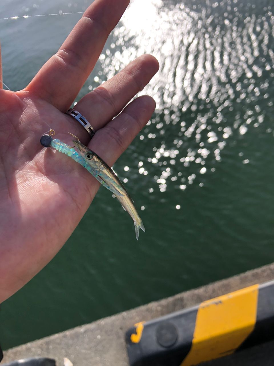 小サバの群れがウロウロしてたけどちっちゃすぎて針に掛からない( ´∀`)