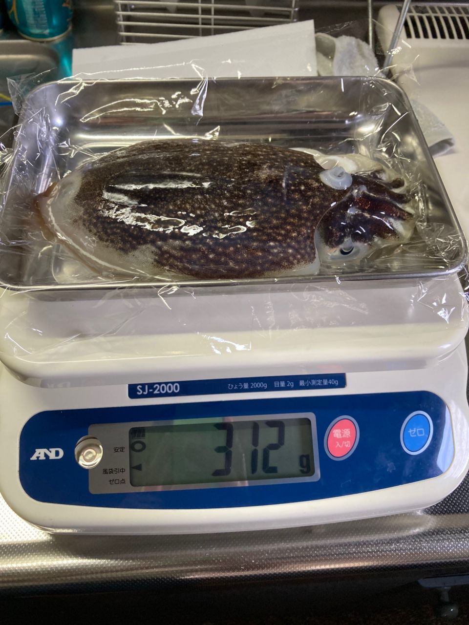 そこからの爆風の中何とか🦑1杯ゲット😅先週よりちょいサイズダウン