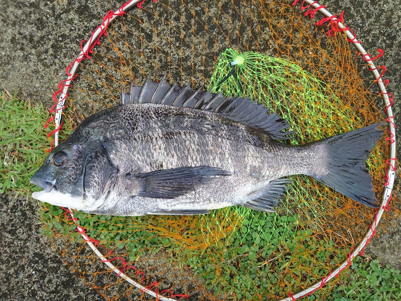 雨上がり、スケスケ、ゴミ多し。あたりは3回で15分程度に集中し、何とか1ケット。浮かせバラシの後だけに嬉しかった!!尾びれが少し欠損していたけどパワフルで持久力もありました!ありがとう!