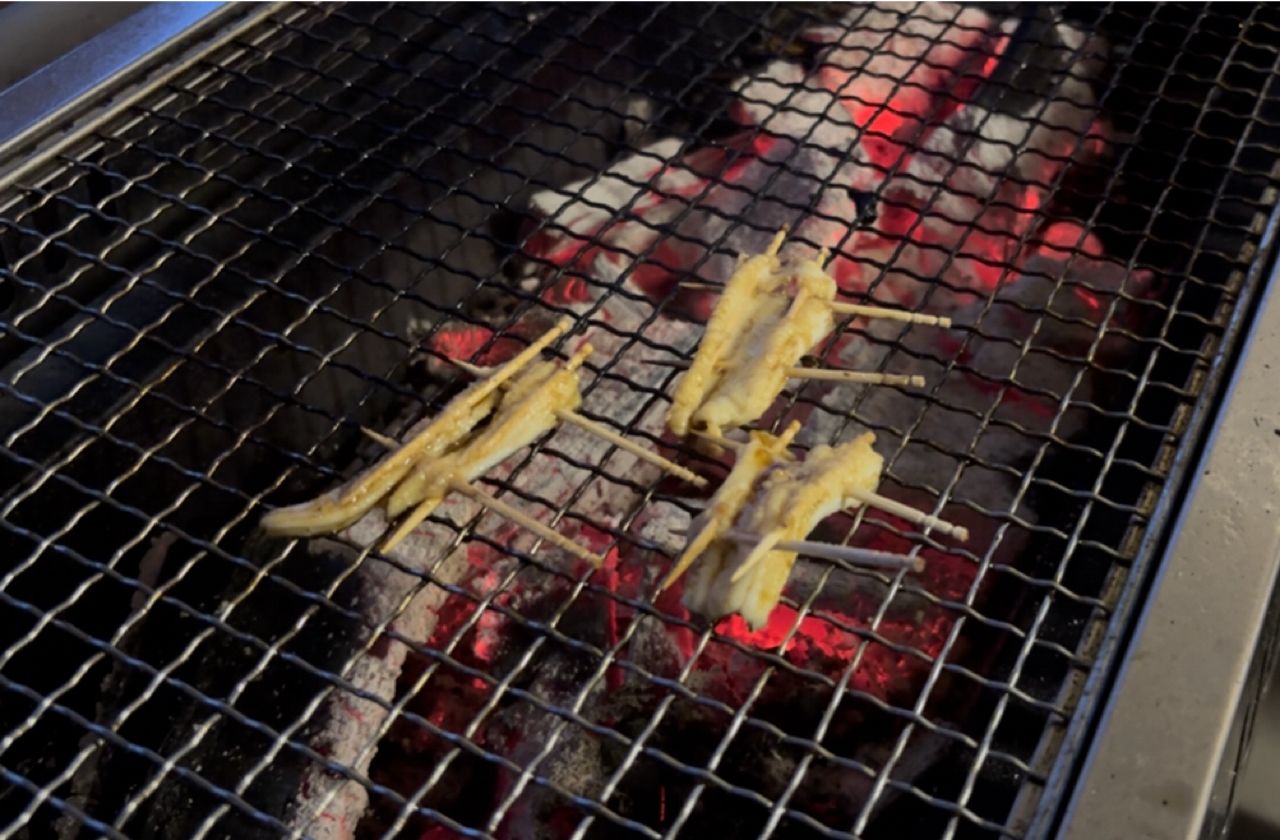 炭火で焼いて頂きました
