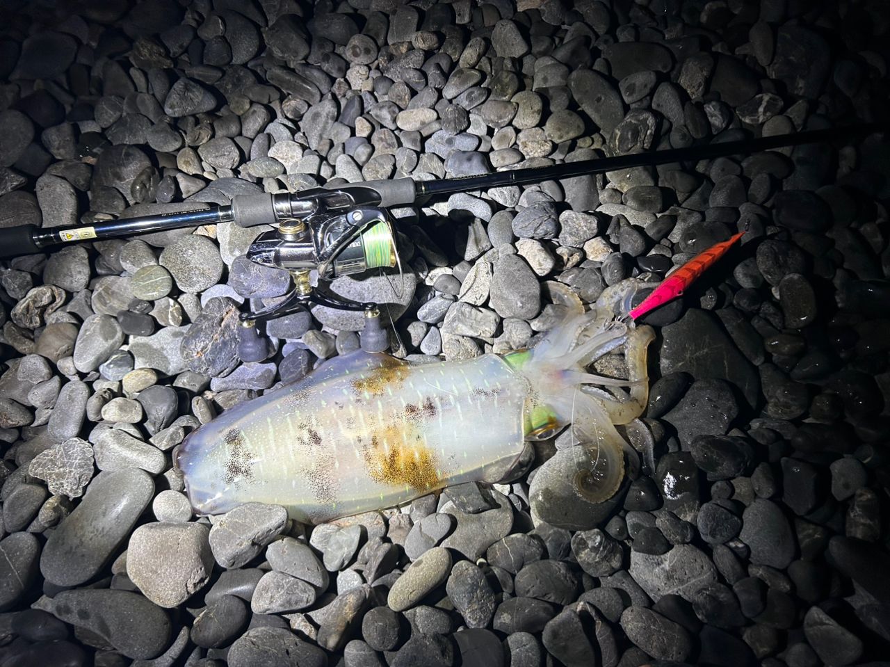 フルキャスト後のファイトなのと、久しぶりのイカの引きに興奮しながらランディング👍