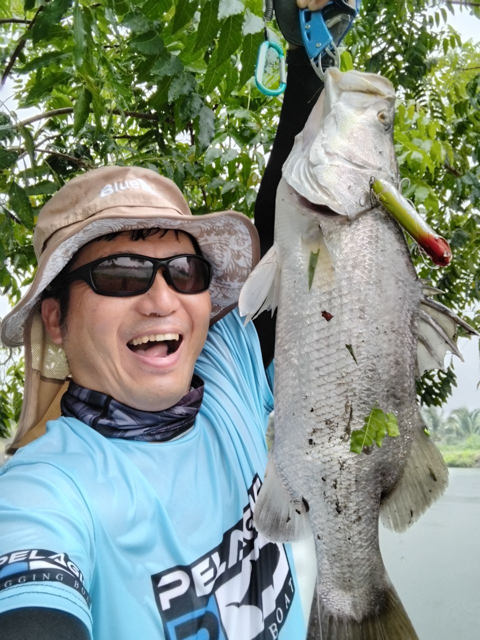豪雨の降り始め5分後にトップで釣れてくれました。むちゃくちゃ引きました