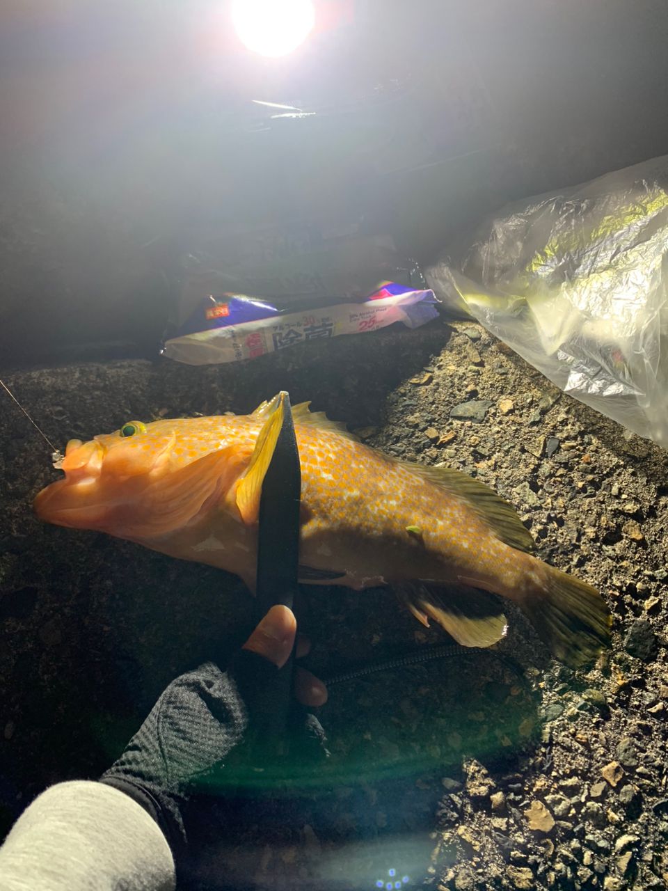 キジハタ釣れた時に、隣のお兄さんがわざわざ車にタモ取り行って助けてもらい感謝感謝です🙇本当にありがとうございました♪