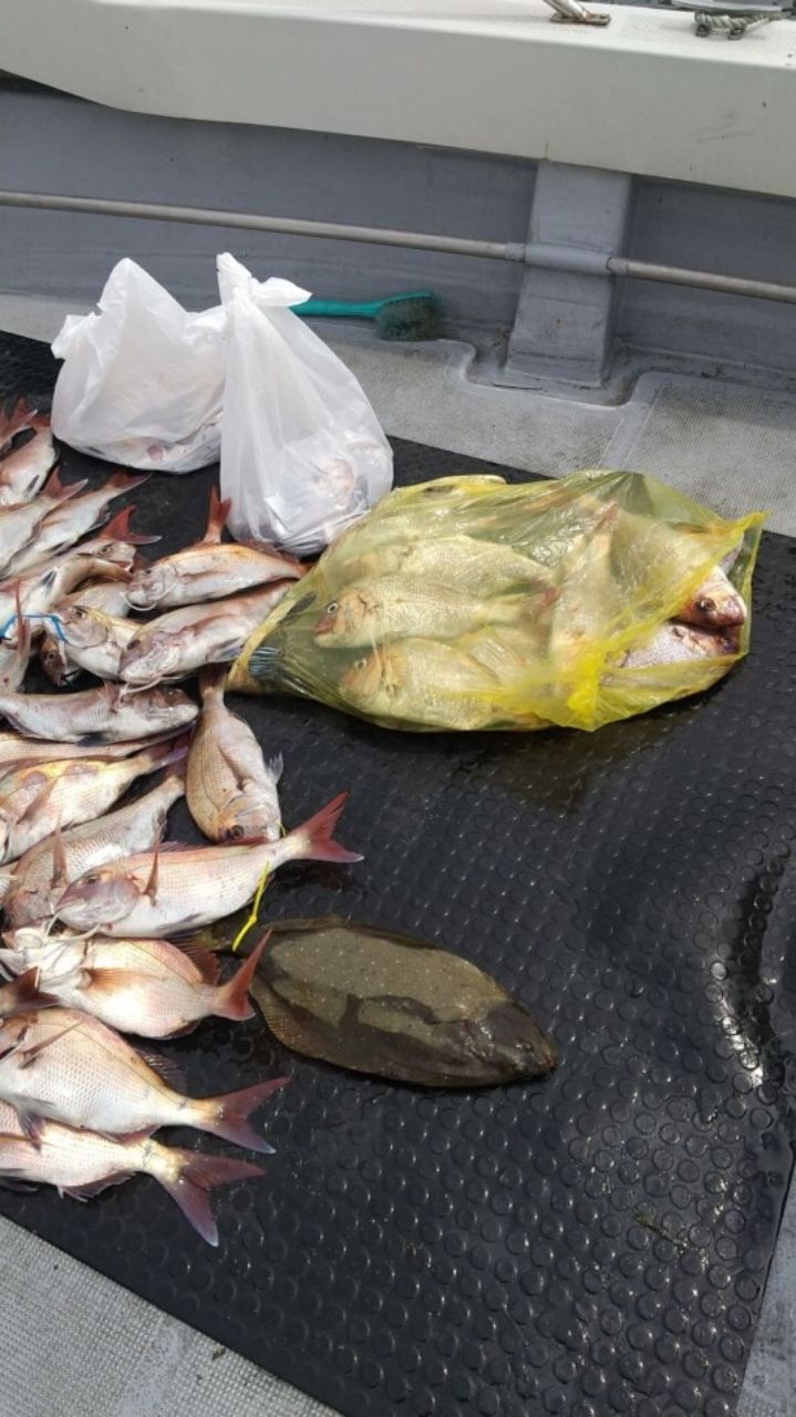 今日は鯛釣りへ。最近だと朝イチ1時間から2時間しか釣れないので朝イチ勝負と思ってたら朝から連発ずっと当たりがあり誰かに9時ぐらいまでヒット連発でした。ただ型はイマイチでしたが今季最高の釣果16枚でした。スペシャルゲストの座布団ヒラメまでゲットし、今日は楽しい1日でした。ジグでも、ボラテンでも、カブラでも、ビンビンスイッチでもなんでも釣れてました。若干ビンビンスイッチがよかったかな。