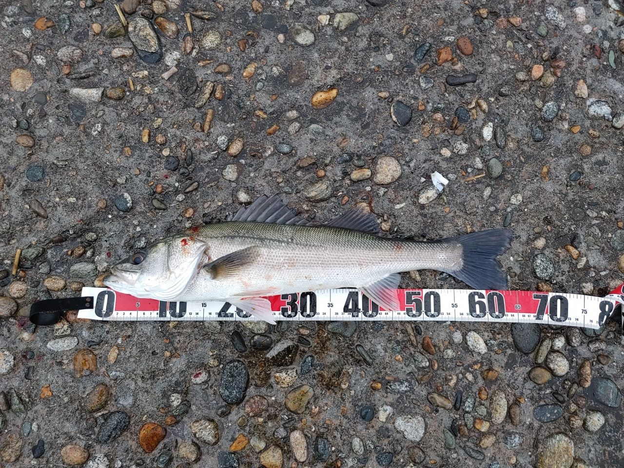 今回釣り場は、雨予報で釣果が少ないためか釣り人はゼロでした。朝マズメは潮が効いてて釣れそうな雰囲気はありましたが青物には出会えず😅代わりにシーバス君が来てくれました。一度エラ洗いでバラすも同じラインをジグを通すともう一度アタックしてくれる食い気のおかげてヒット!自己新記録更新しました😁その他はエソ軍三匹がお相手してくれました🐟️ブリ族はどこに行った‼️