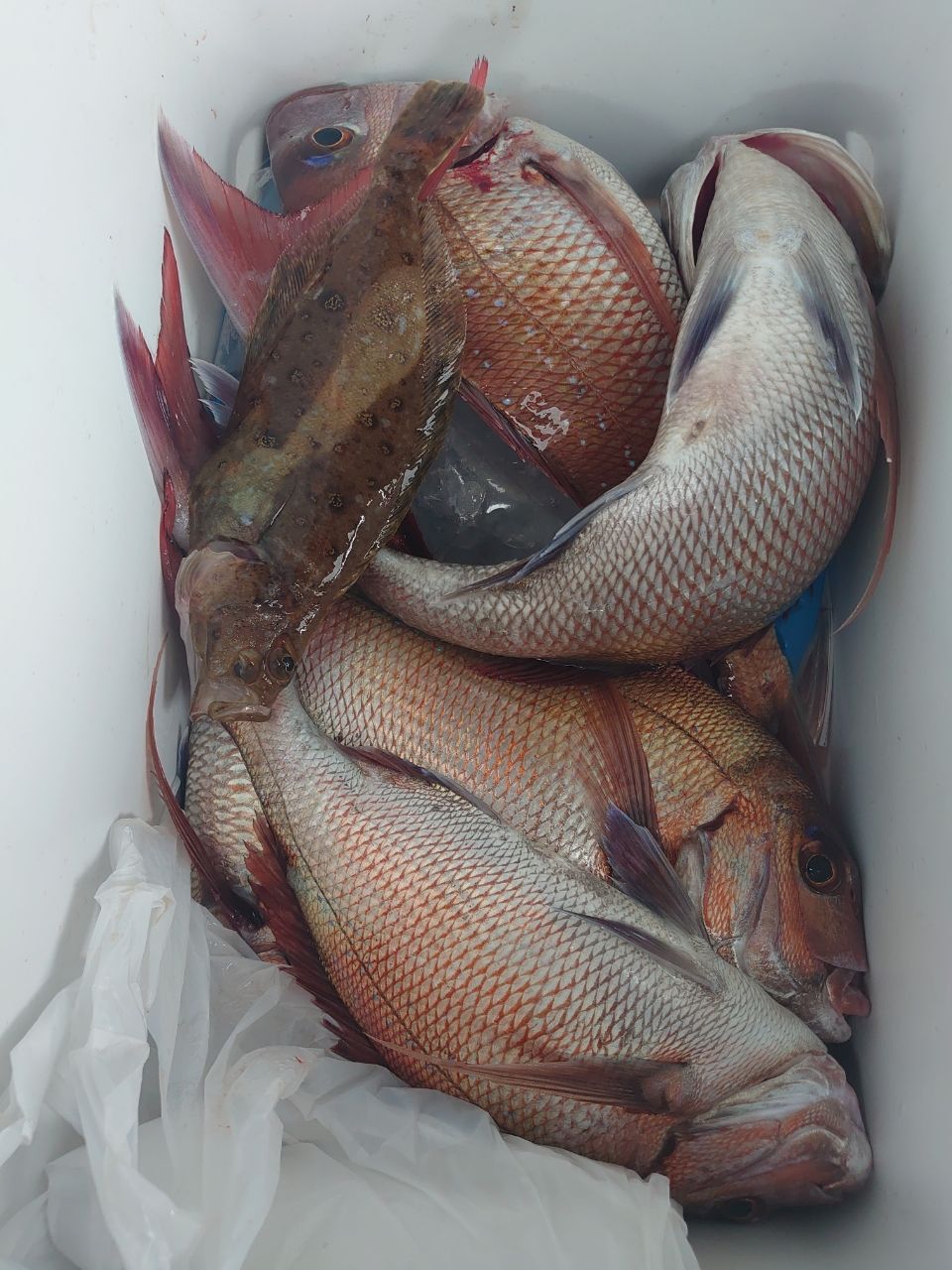 平舘マダイジギング行ってきました。自分の釣果はマダイ5、サメ1、カレイ1。朝一から反応が良くて船中全員安打。ジグで釣れてた数が多かったように思います。一番釣れてた人はツ抜けも達成したようでめっちゃ釣れてますよ。