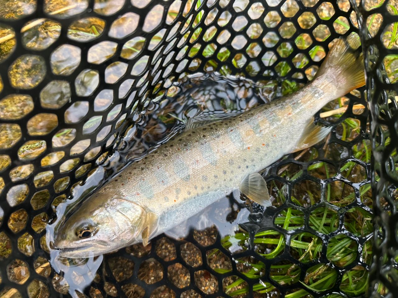 ぶどう虫での餌釣りとスミスのARでアマゴ2匹釣れました