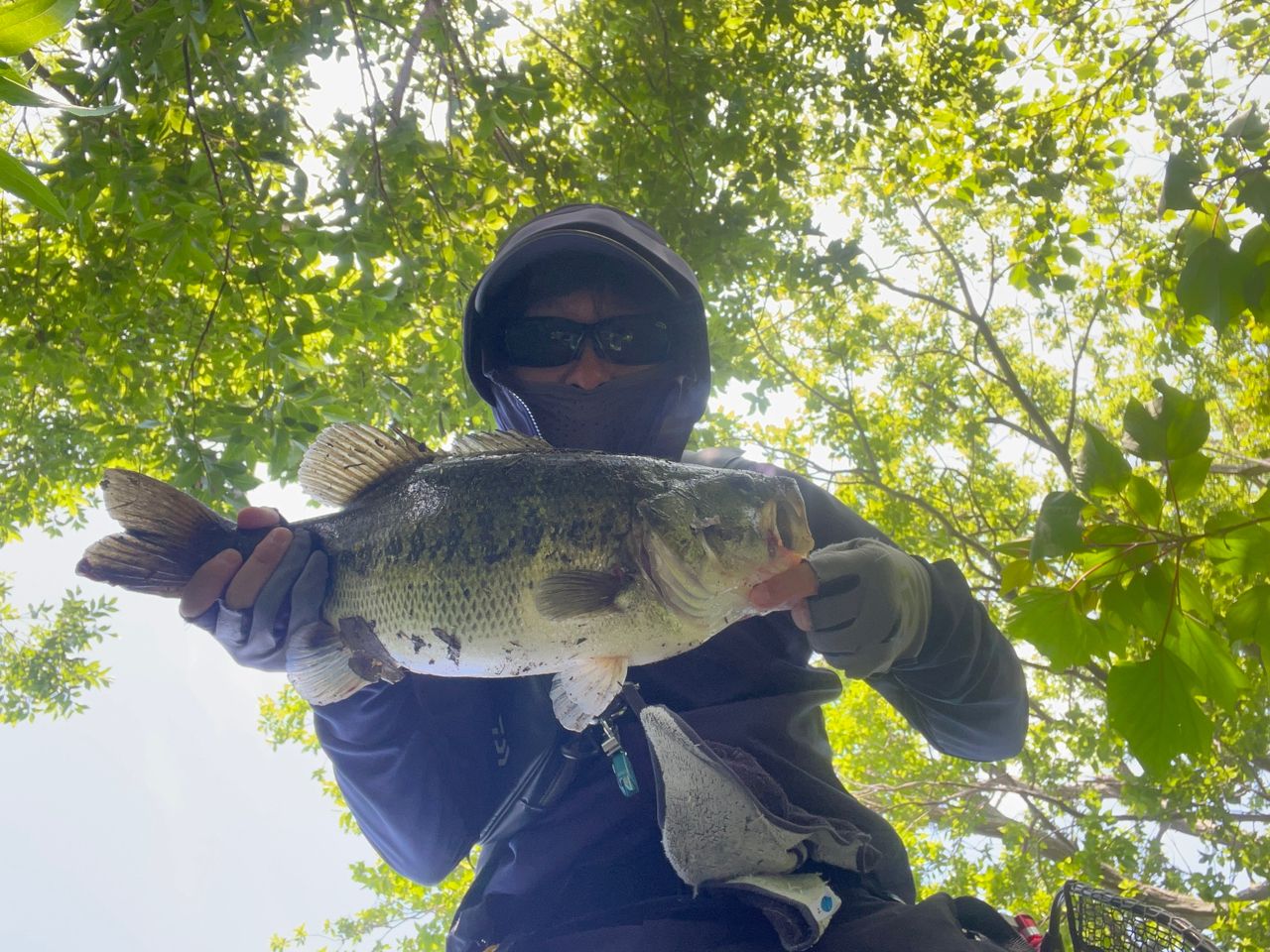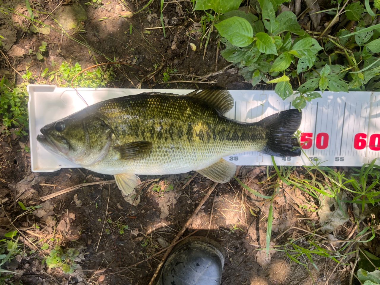 先週から居るのがわかってたけど、釣れなかったバスをようやくキャッチ❗️2匹居たうちの小さい方が食いました😆
