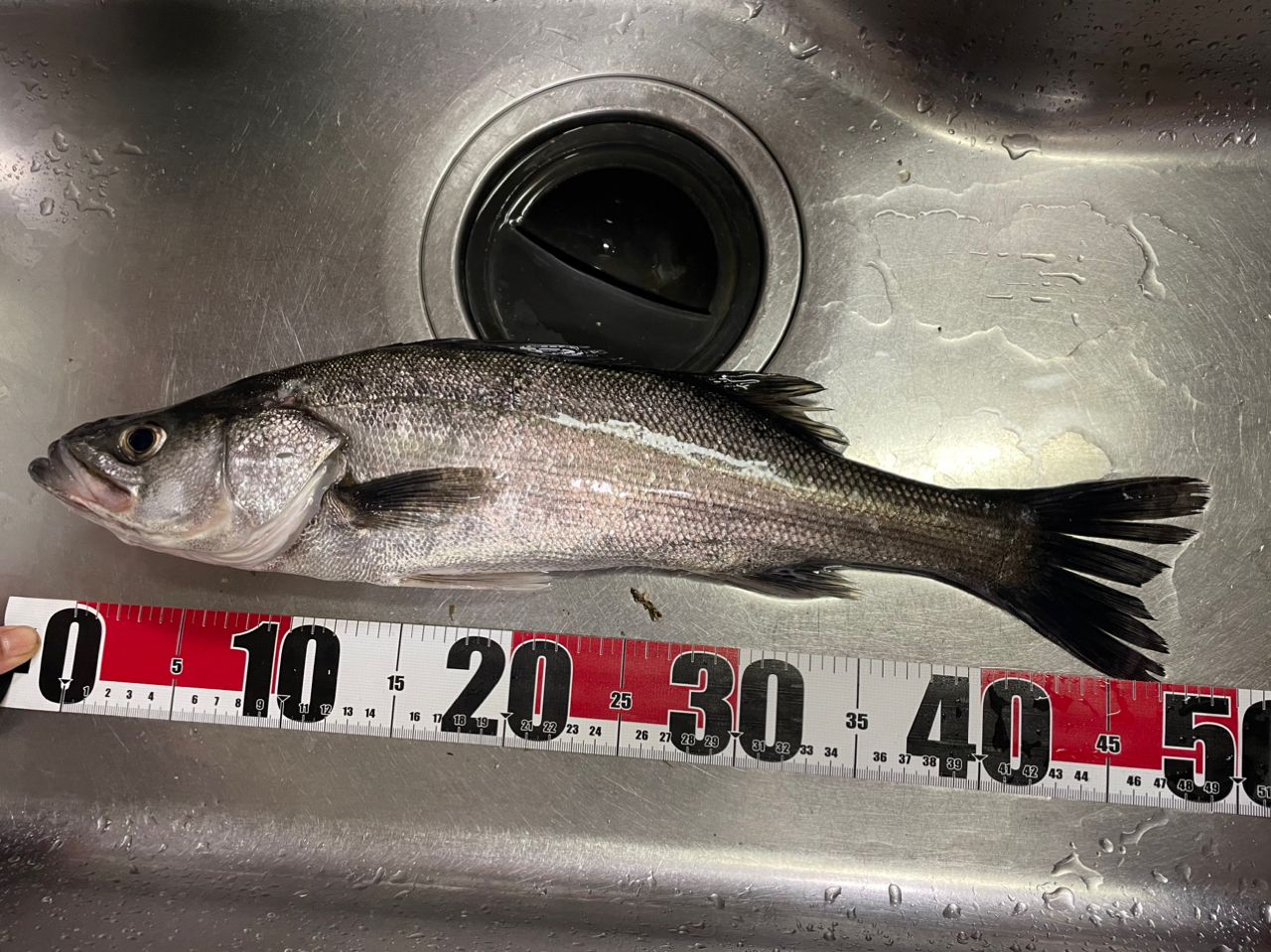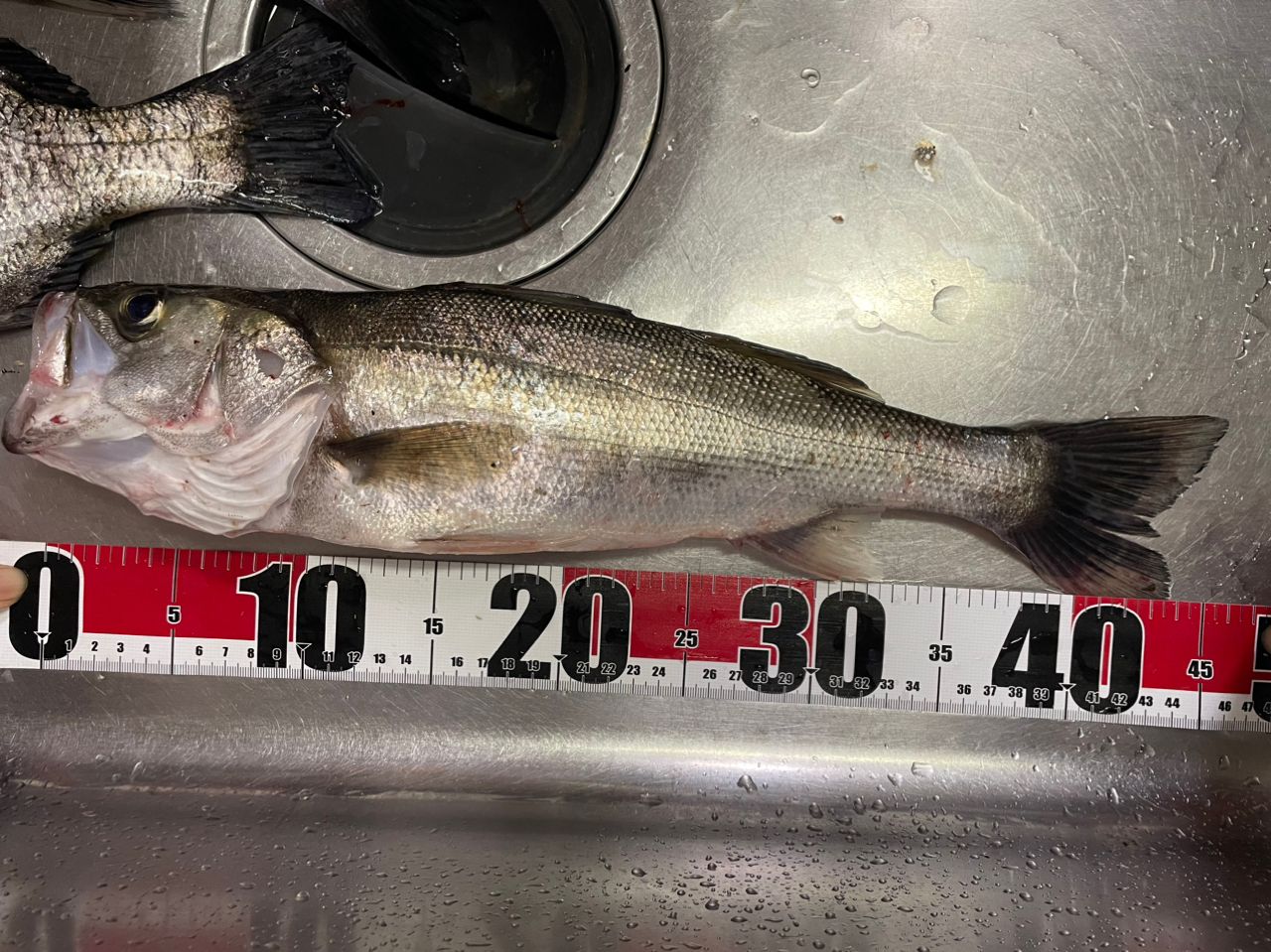 40cm台のフッコ2匹と25cmのヒラセイゴちゃんが釣れました!!写真はマルです!