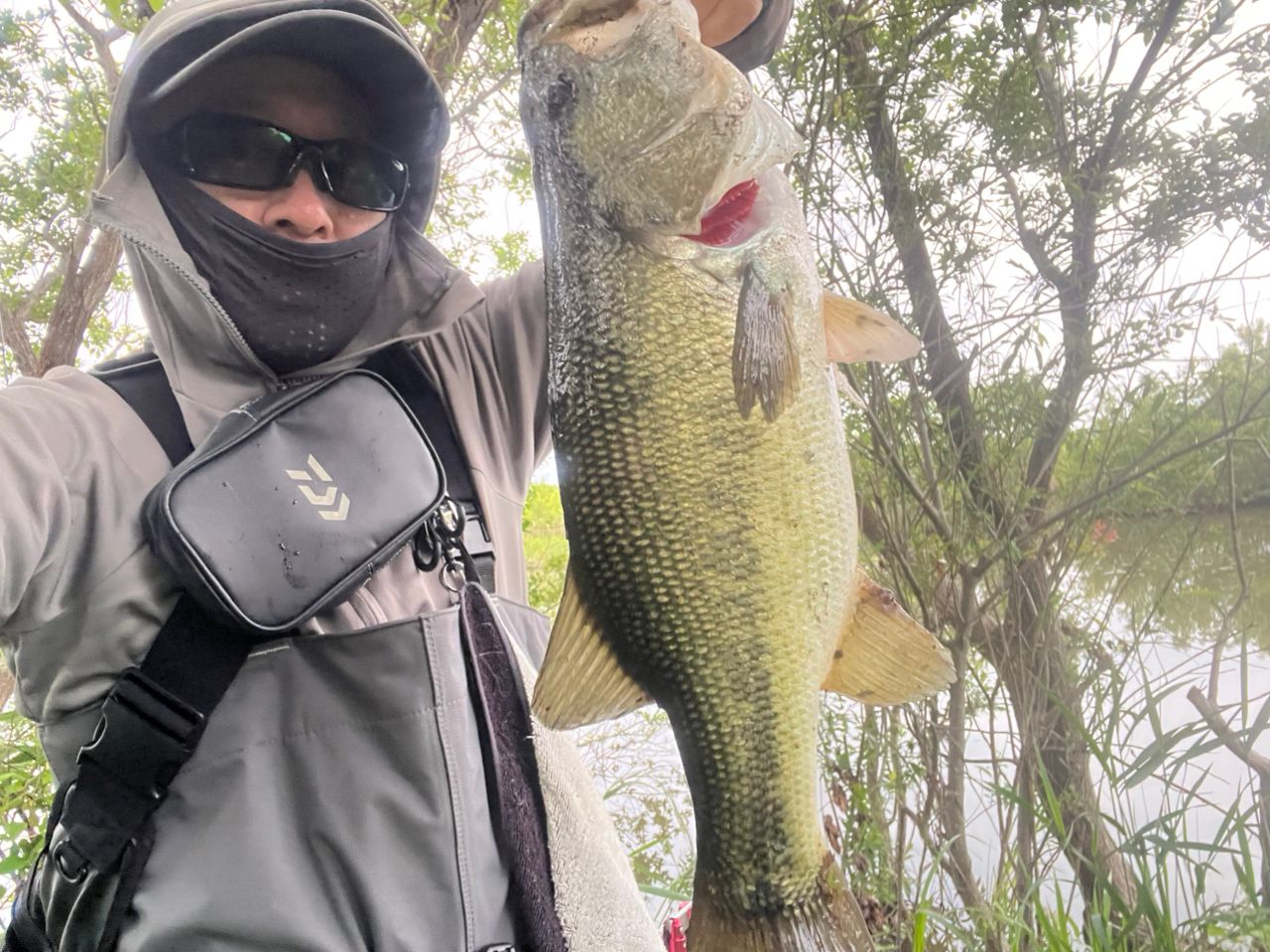 朝イチはミドストで見えバスをキャッチ❗️惜しくも50cmありませんでした🤣