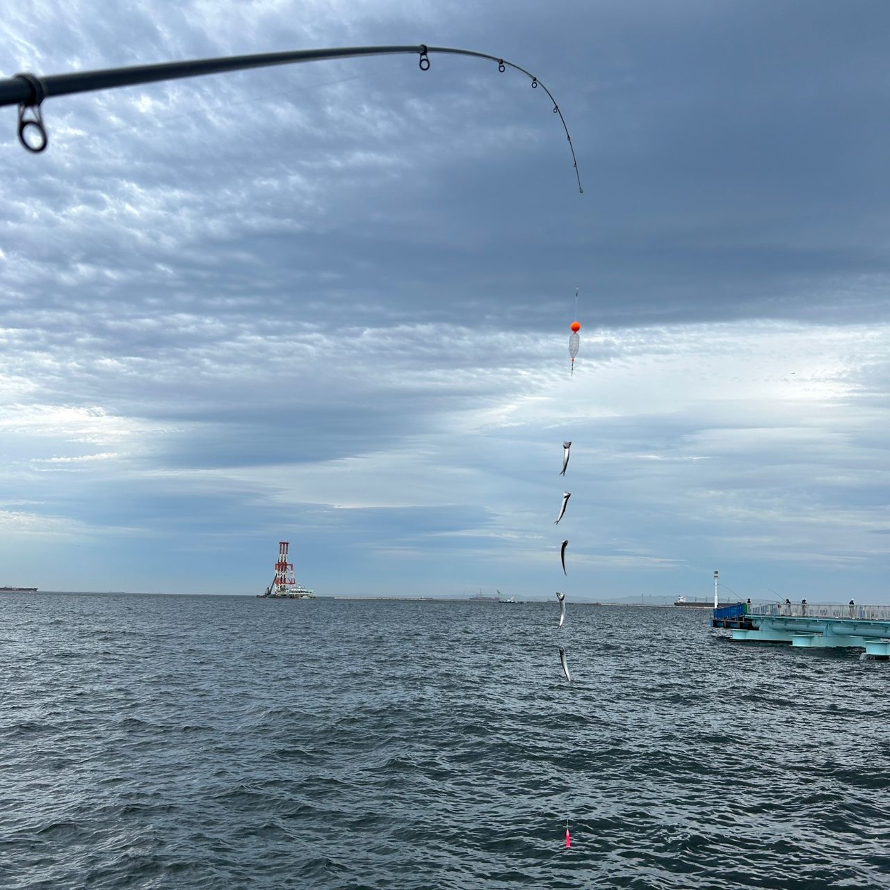初本牧!15時〜19時。いろんな魚種を釣りたいけどとりあえずみんなが沢山釣ってるイワシをサビキで。手前側で釣ってました。途中デカいコノシロも5匹釣れましたが、食べないのでリリース。タコも釣れたのでそれは別投稿で。
