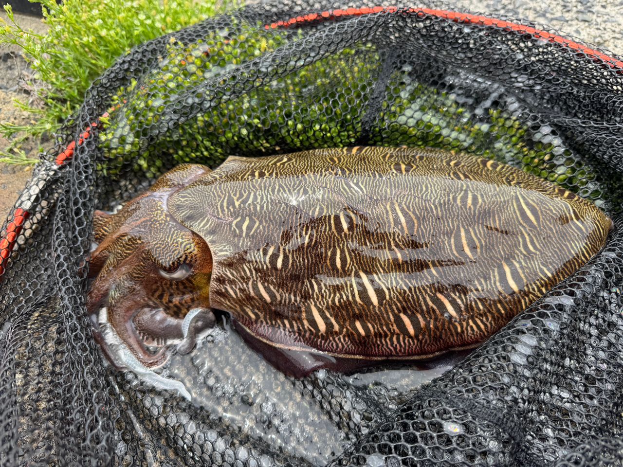 そろそろアオリイカ釣りたいなぁと思いながら、底をしっかりとってモンゴウを釣る。グッドサイズだったんで楽しかったです。でもモンゴウ上手く絞められない。アドバイスください。