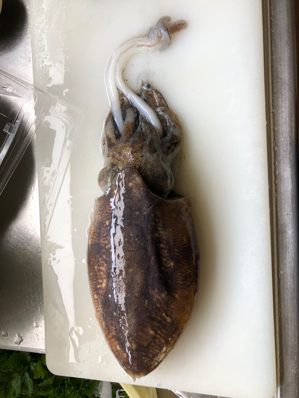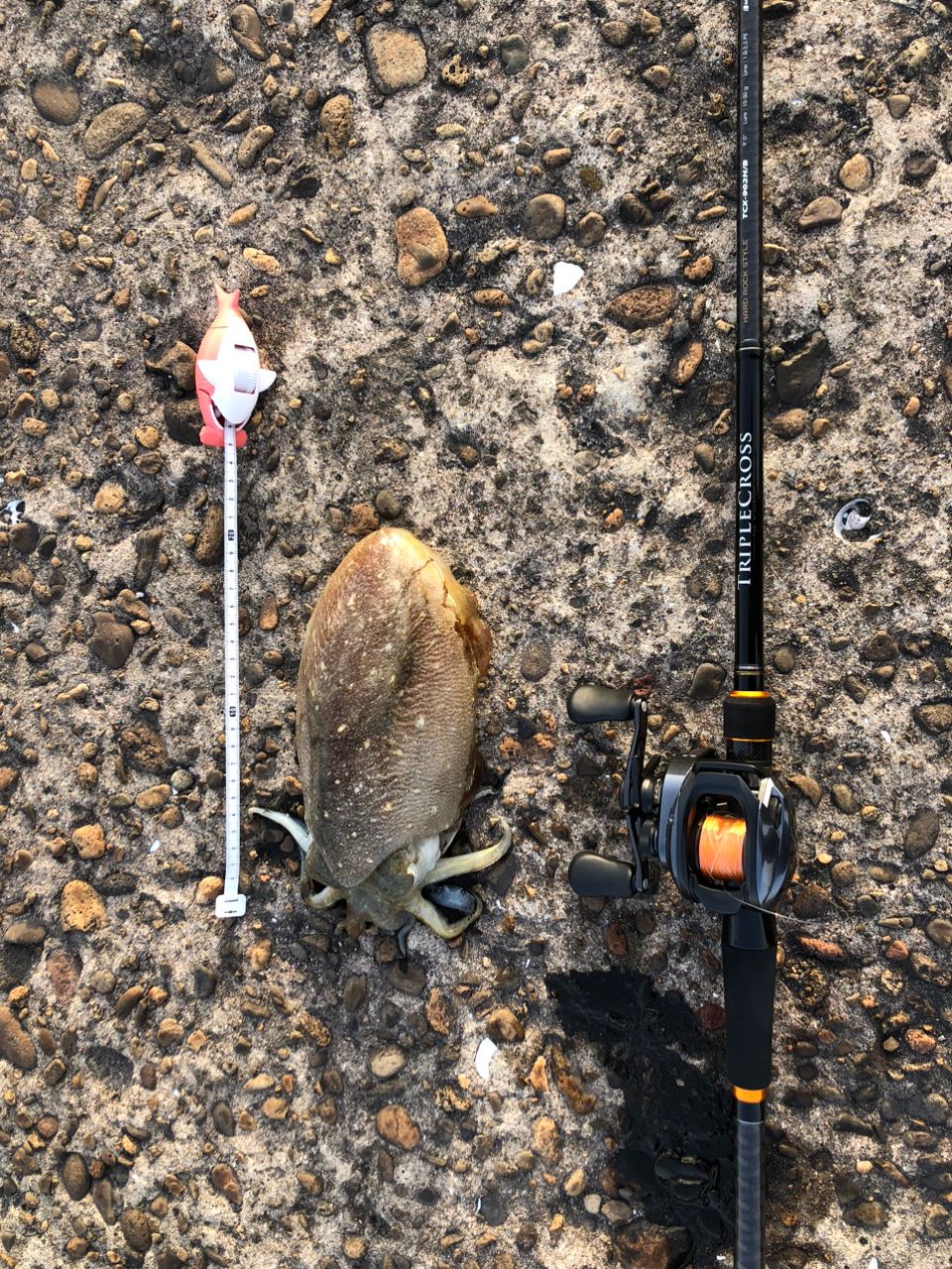 アイナメ狙いのロックフィッシュで釣りする前に堤防沿いに泳いでたスミイカをタモで掬って作業終了