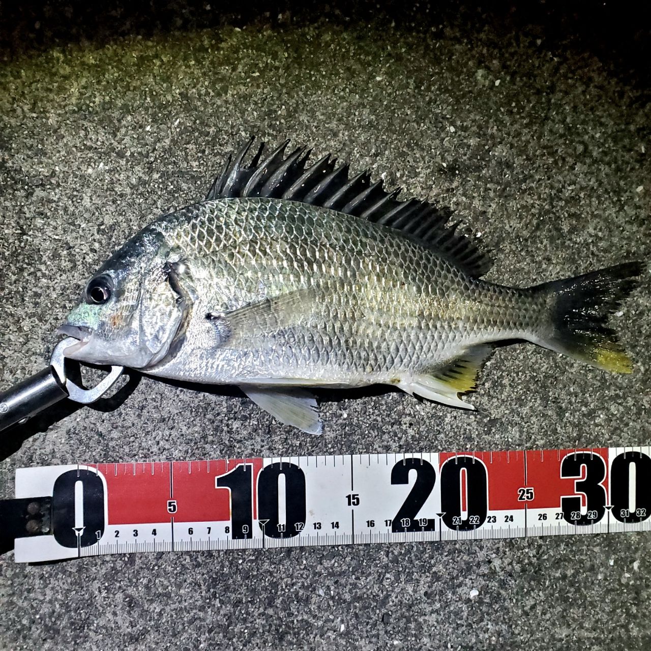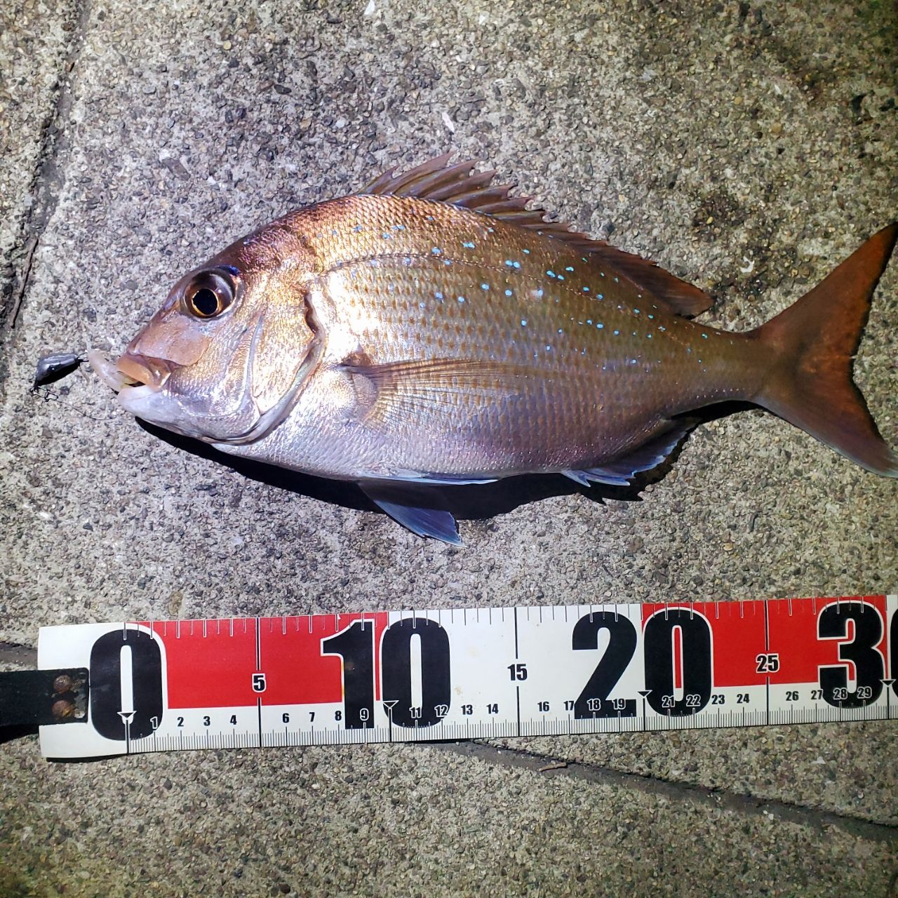 水深あって少し濁っていたのでパールカラーの柔らかいワームで派手めにアピールしたら食いました。今年入って2枚目の真鯛、でも小ぶり…キビレも40無いですがかなり引きました。アジがいない(༎ຶ⌑༎ຶ)