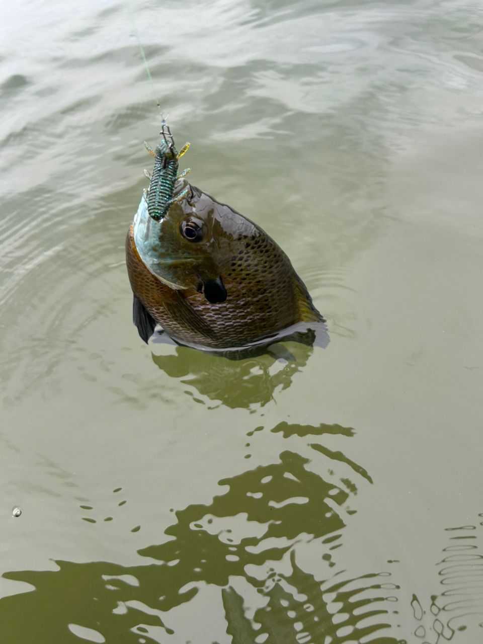 昨年と同じタイミングで手の平サイズのギルが釣れ、そして直後にアフターがファーストフォールで食ってくる。