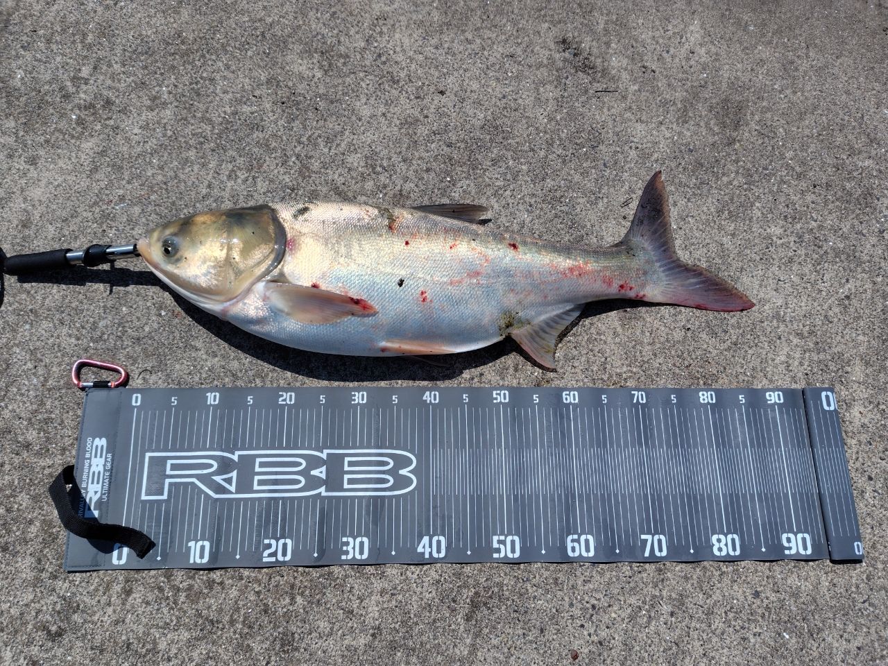 浮草エリアで先行者に話を聞くと一昨日ここでミノーでシーバス釣れたというので、ミノー投げたら、ハクレン(-_-;)