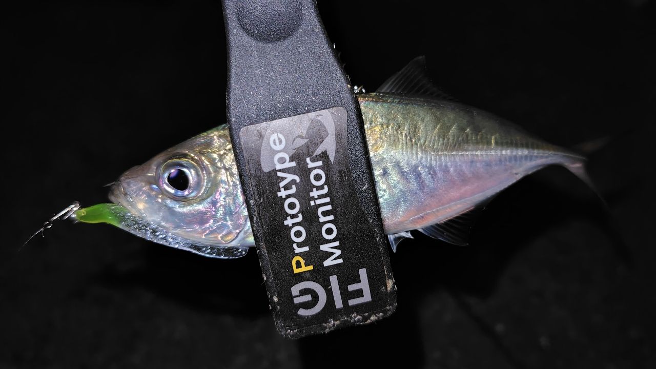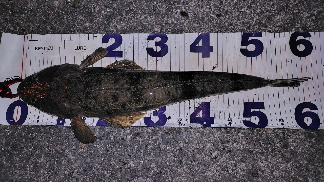 17cmくらいの鯵5匹くらい釣った後サイズアップ狙って流れに乗せながらレンジ入れて行くとヒットしたのは62cmのマゴチでエステル0.2号リーダー3lbのアジングタックルでよく捕れたな〜
