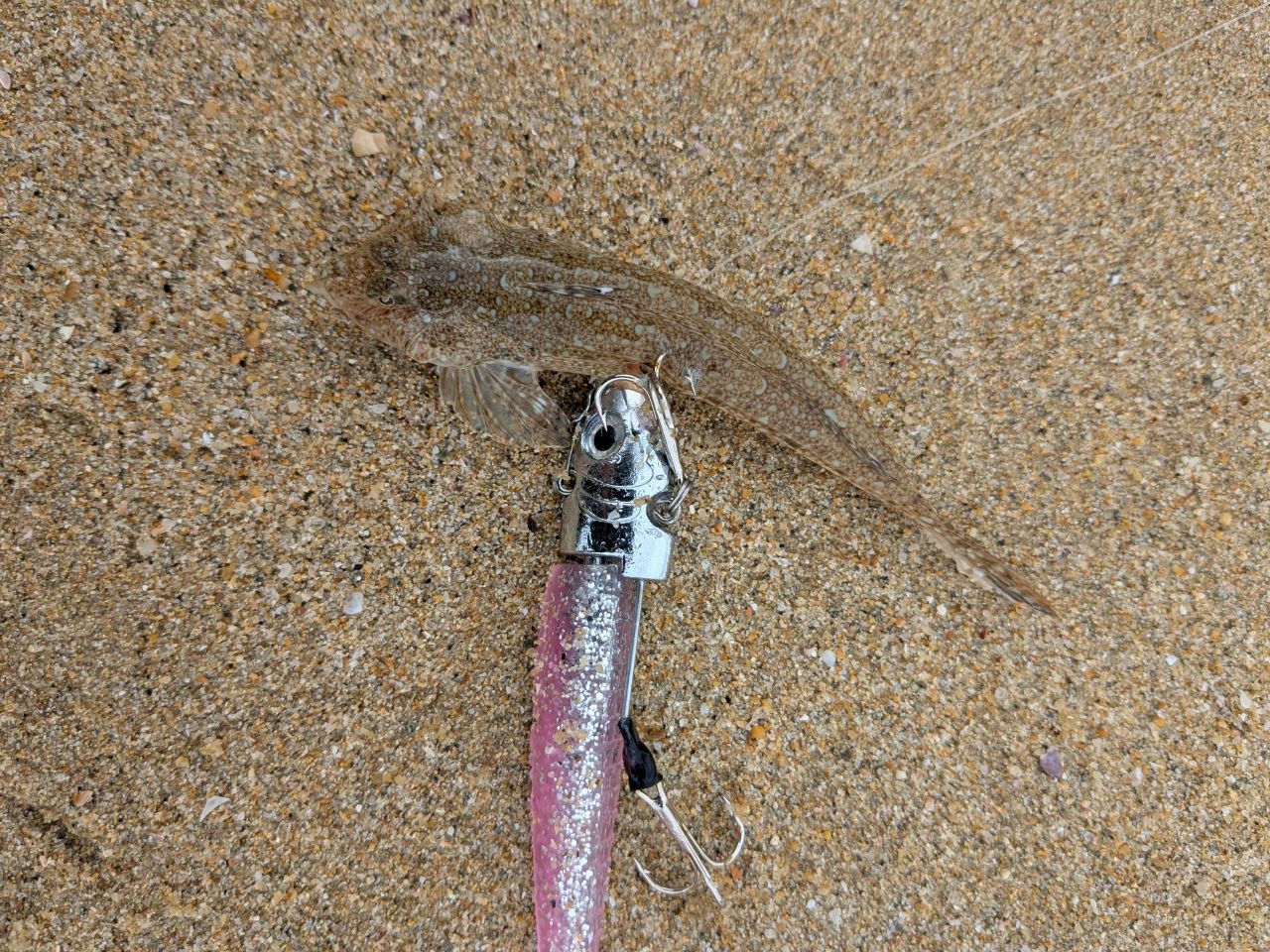 何年か前に間違えて買った、重たいエギにブレードつけて投げてみた!サーフだからコウイカでも釣れるかなって思ったけど、カニが釣れたwwダイソージグヘッドワームでマゴチの小さいの?が釣れまスレ( ̄^ ̄ゞあと、でっかいエイがスレ掛かったのですが、怖かったので写真どこじゃありませんでした😱