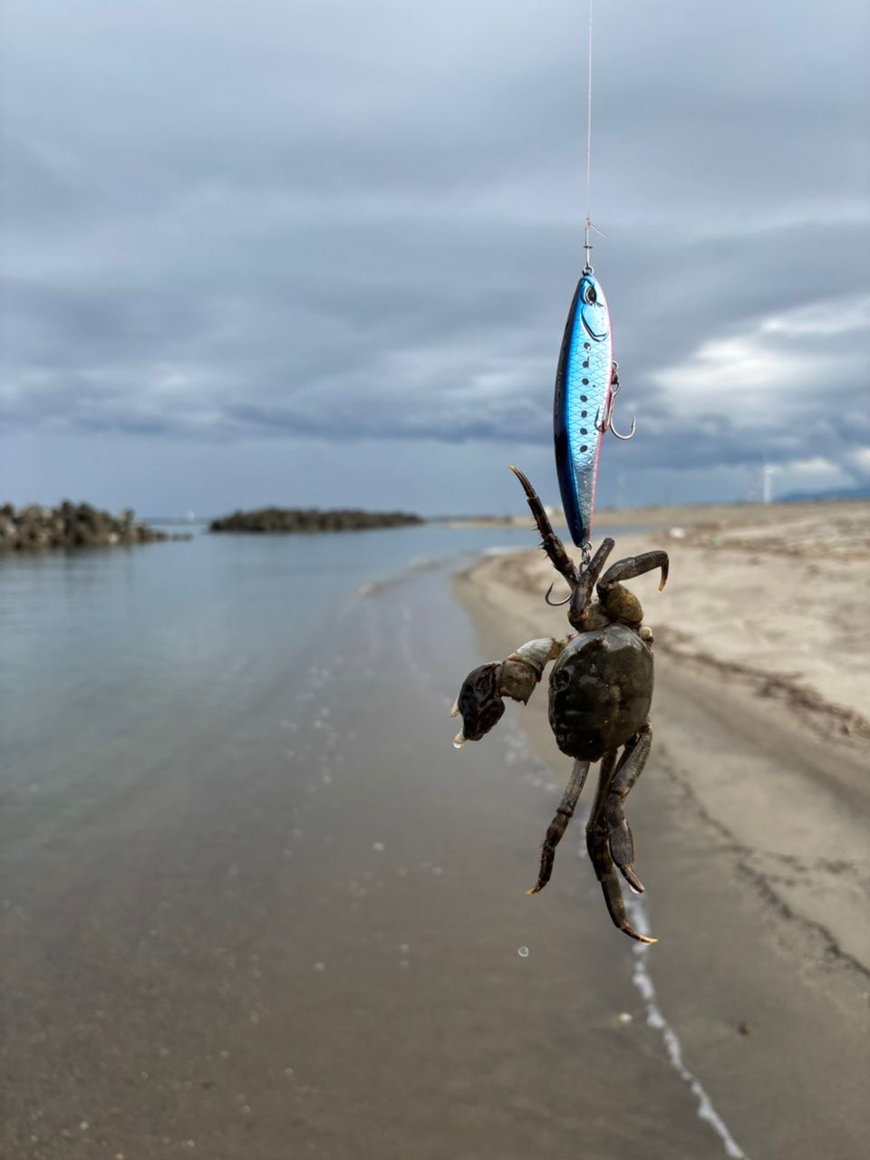 朝まずめが終わったので少し移動し付近のサーフ調査がてらやってみるとモクズガニが遊んでくれました。