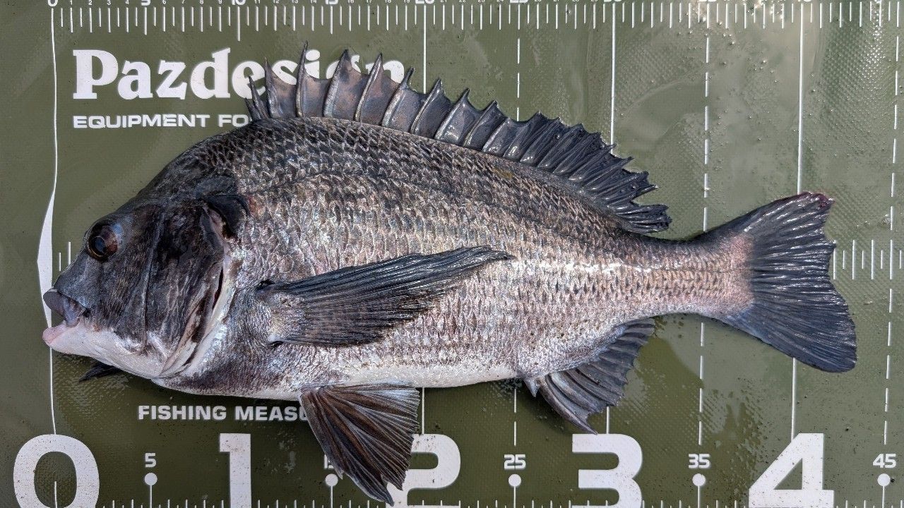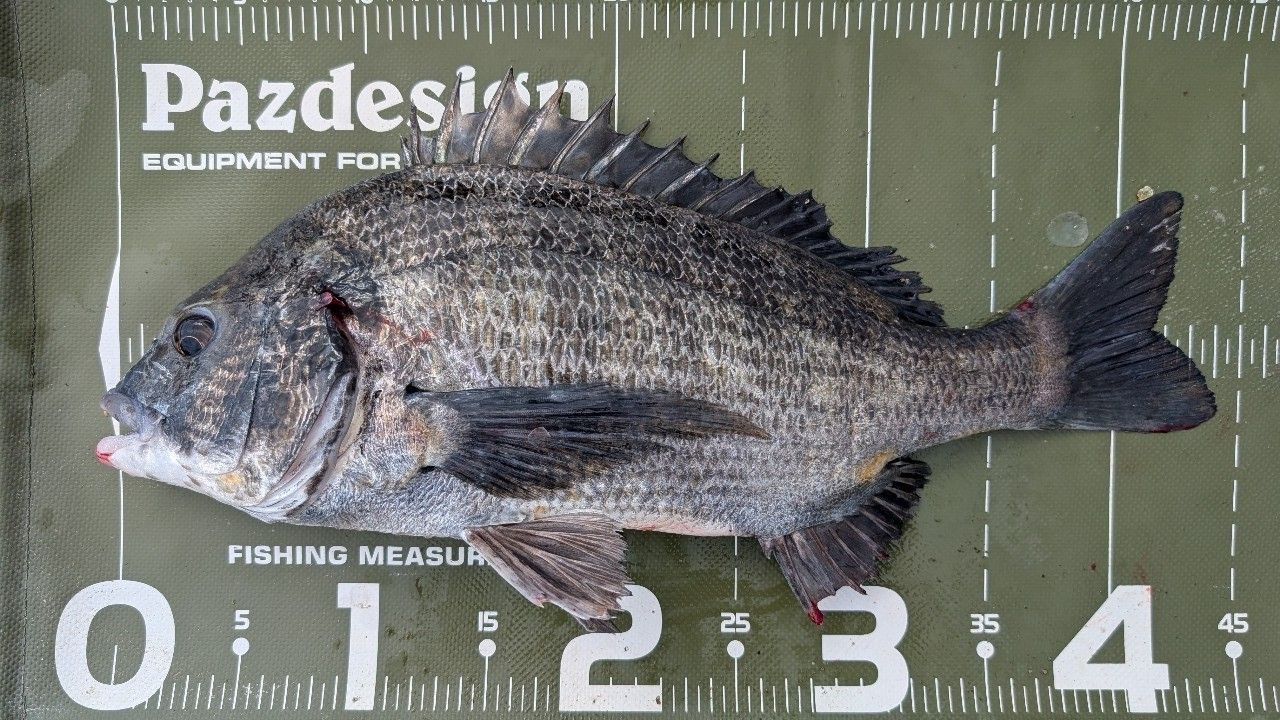 43センチ。貴重なシーバスキャッチです。今日はクロダイが沢山釣れました。