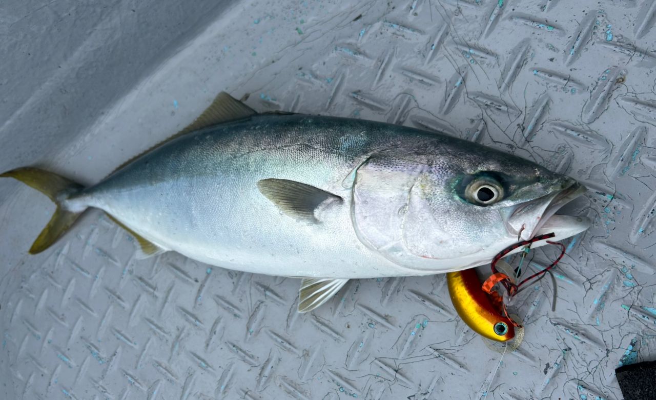 落としてしばらく気付かずラインがずっと出続けるから止めたらヤズが掛かってました😅何もしてなくて釣れてラッキーでした🌟