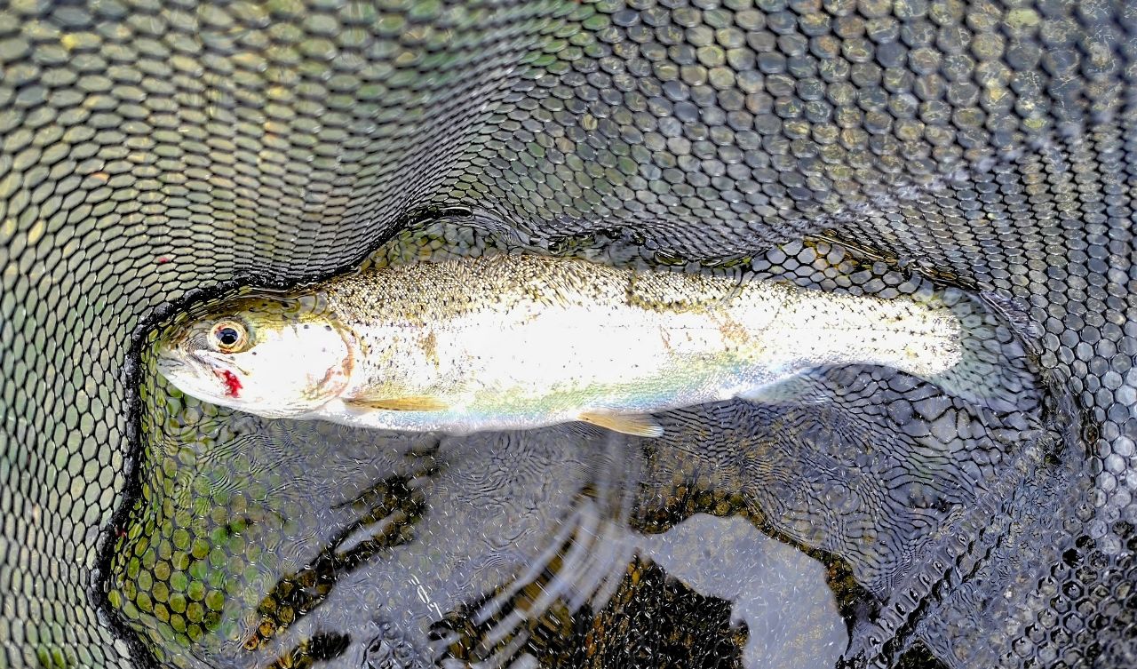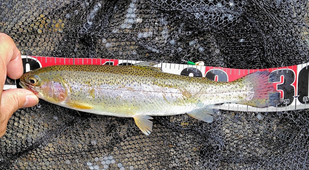 やりました。人生初のニジマス。