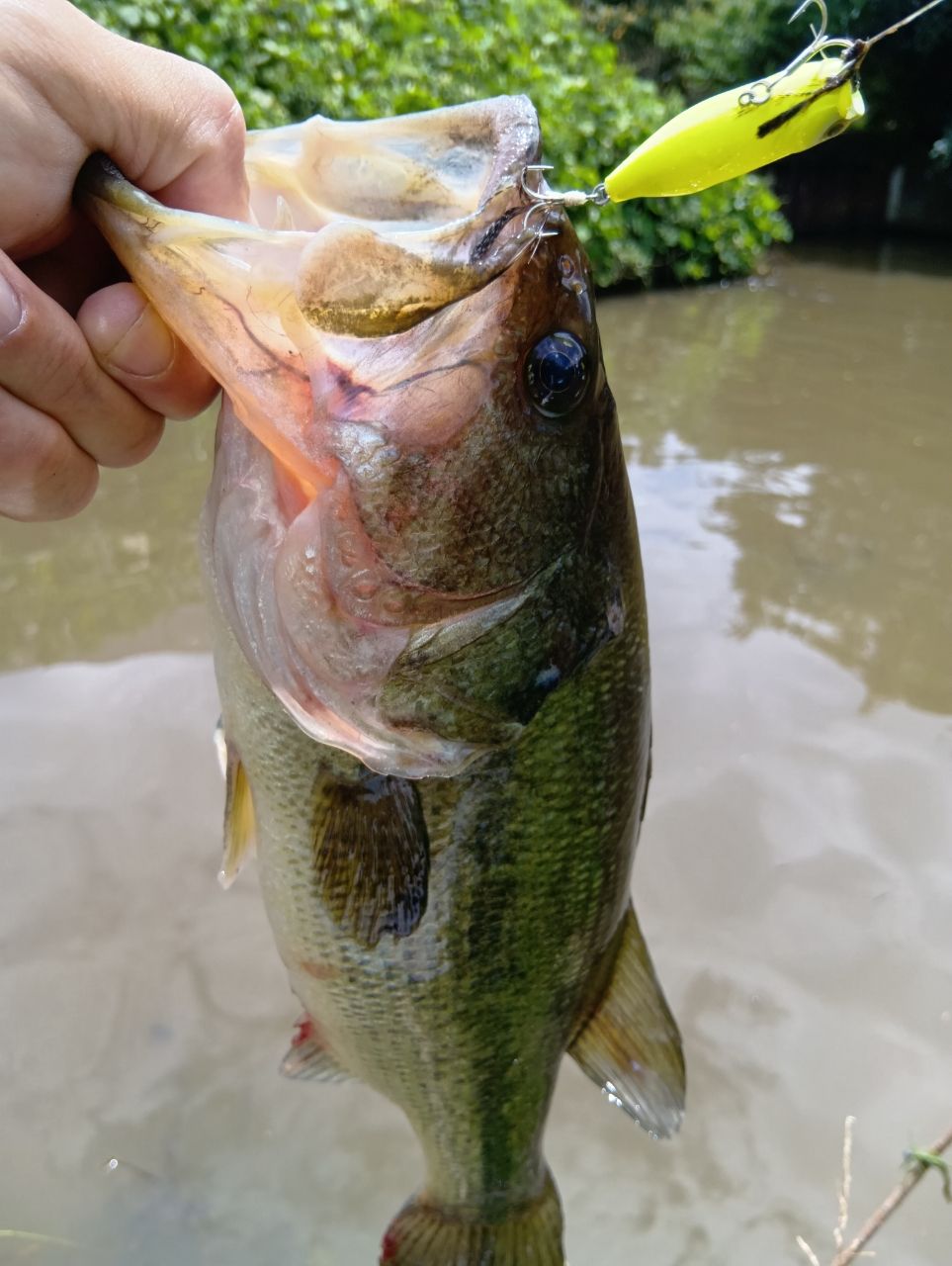 本日夜勤明け休みの為釣行して来ました☀️今日は午前中は🌰🏕️川、午後から印旛沼の予定でポイントまわり、🌰🏕️川の、2日の日にいいサイズをバラしたポイントにてまたバイト〜!バラシたのとは違う感じでしたが、それでもナイスサイズの43センチをキャッチ🎣😄いつものワー厶にて。つづいてセカンドポイントは異常なく、サードポイントにて今日は暑いしここかな〜?ってトンネルの中にポッパーをねじ込んでツーアクション…チュポッ💦なんか弱々しいバイトでしたが、44センチが釣れました〜🎣😄バイトは弱々しかったですが引きは強烈でした😊その後バイトなく、印旛沼へ移動し、水路にてさっきのポッパーにて豆2匹ゲッツ(15、20センチ)🎣😅その後ポイント移動しながら4時位までやりましたが、バイトなく終了〜